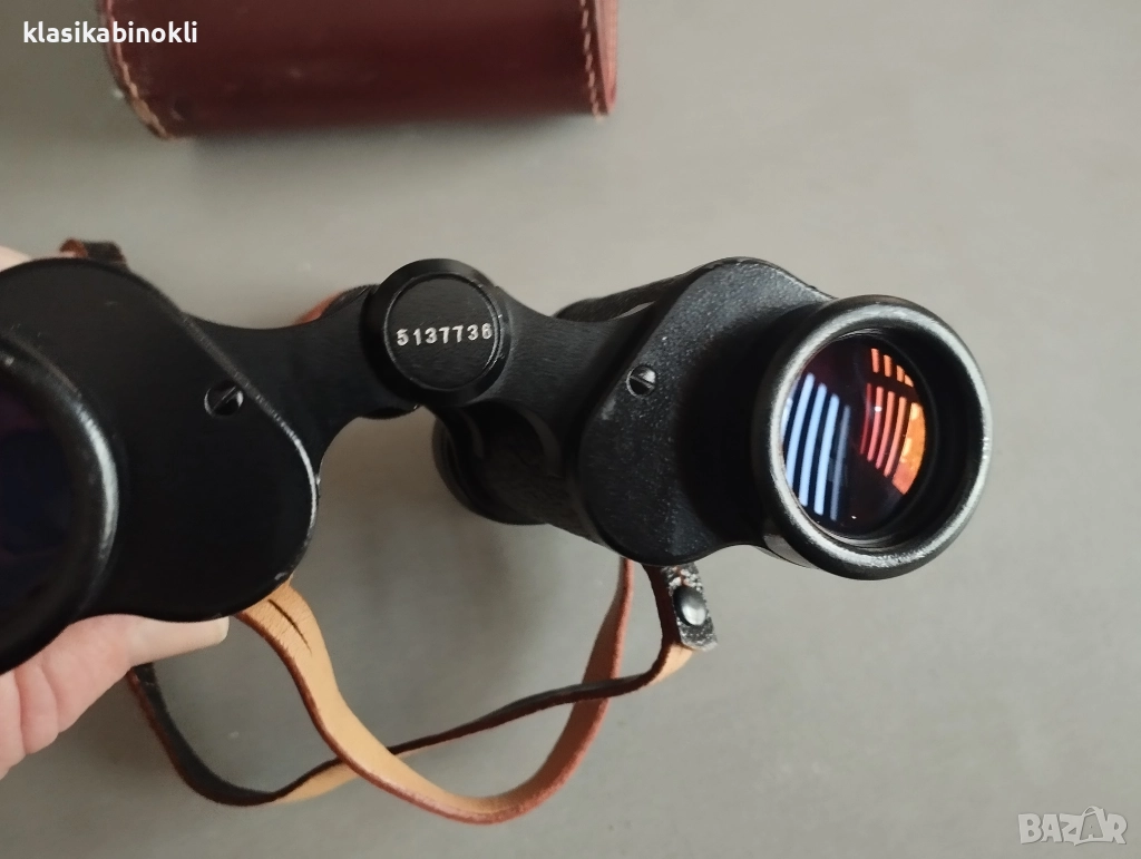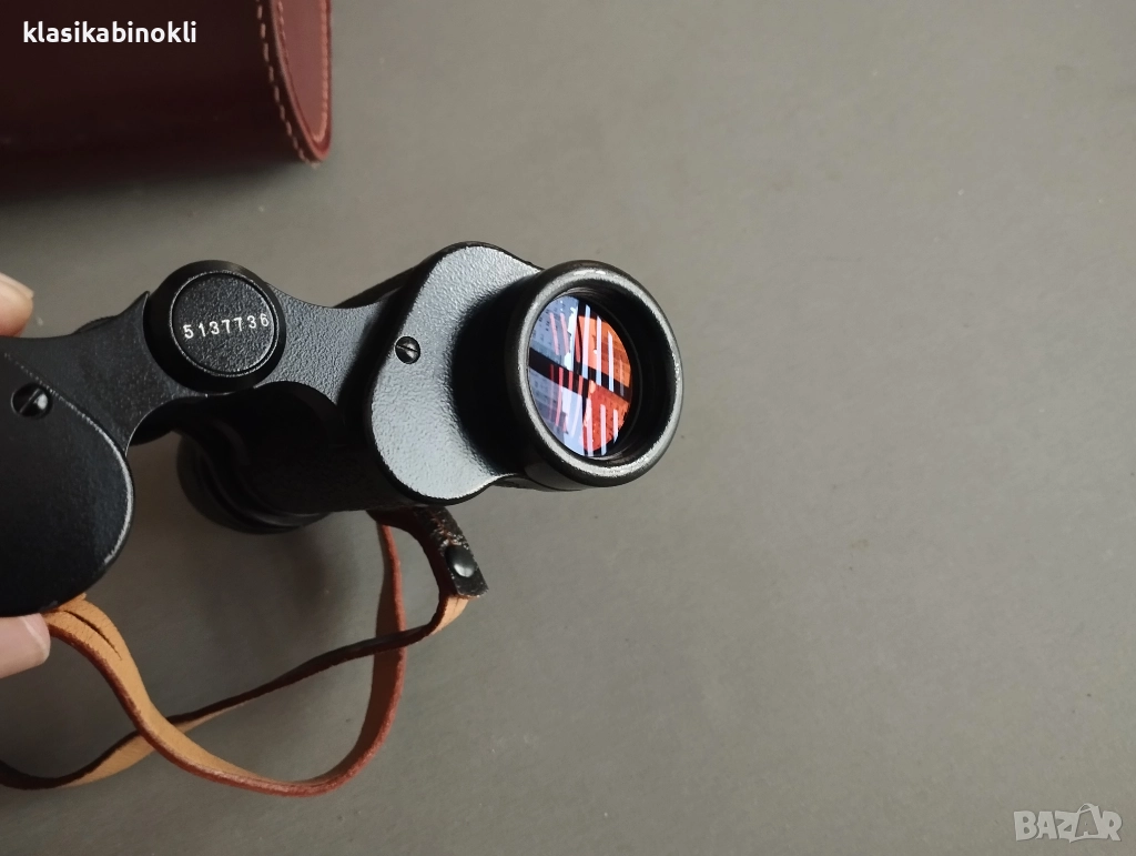 Бинокълът е в комплект с ОРИГИНАЛЕН КОЖЕН КАЛЪФ , ОРИГИНАЛЕН КОЖЕН РЕМЪК