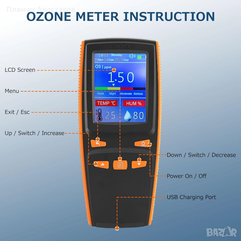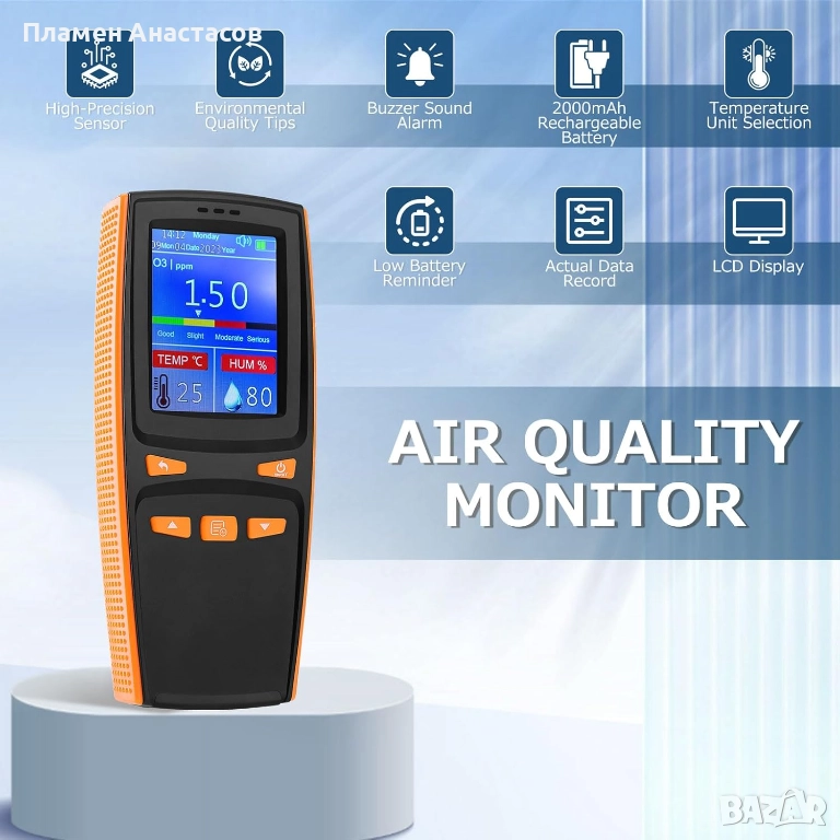 Устройството е практично решение за всеки, който иска по-добра информираност за въздуха, който диша, както и за температурата и влажността в заобикалящата го среда.