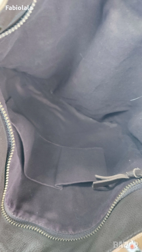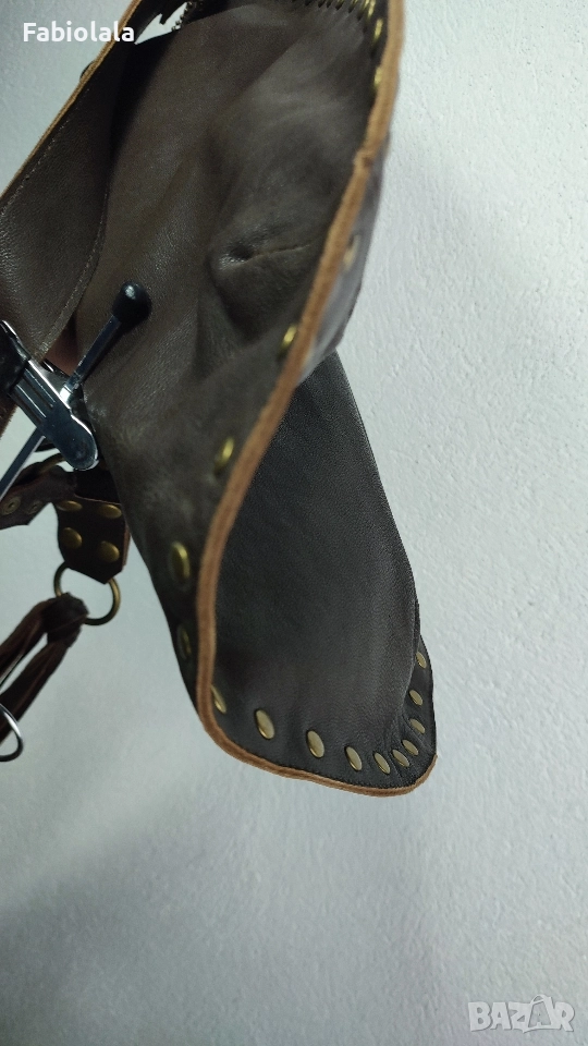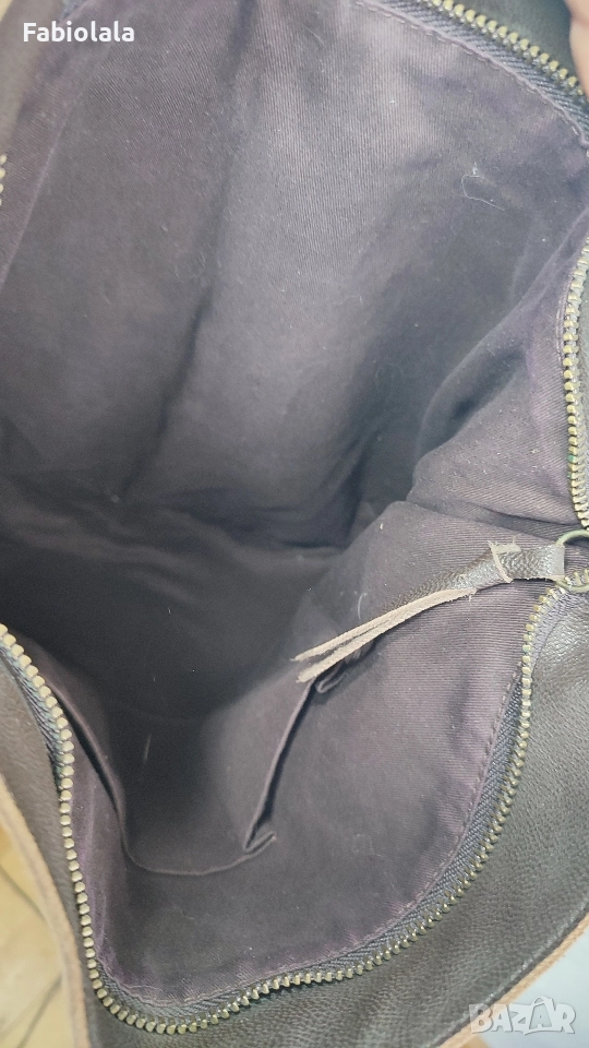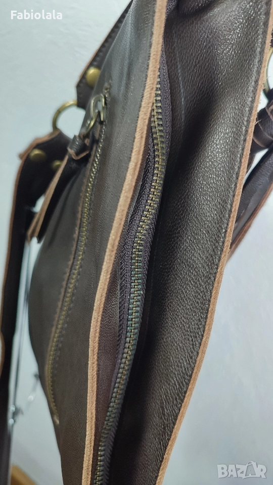Кожена чанта за през рамо с 2 ципа и памучна подплата. 37x35 см