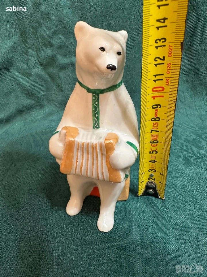 Руска Статуетка „Циркова мечка с акордеон“, Дулевски завод (Дулево), СССР, 1970-те години. → Обява 52974470