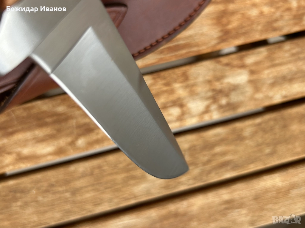 Ножът е стара класика, качествена изработка, много красив и удобен, солиден нож. Не е използван и заточван, перфектна кожена кания. Стомана 440С. Намира се в София. Предава се лично или по куриер след предварителна уговорка и заплащане.
