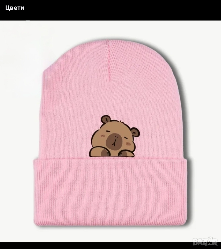 Нови розови детски шапки с Капибара и с Панда. Розов колан със златно сърце-закопчалка. Биха станали и на по-слаба жена. 25 лв за трите неща.