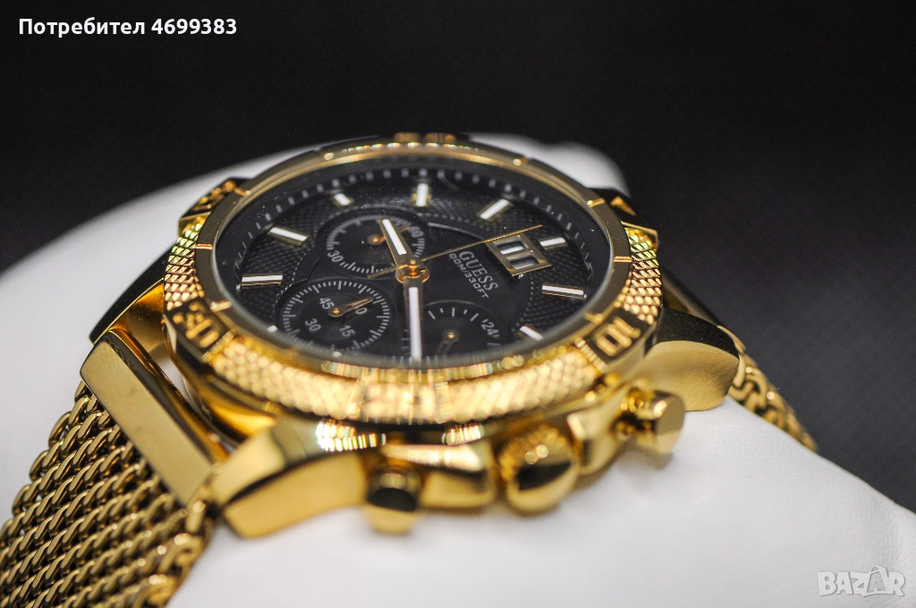 Guess – Waterpro хронограф – Черен циферблат – Фабрична верижка от неръждаема стомана със златист цвят.