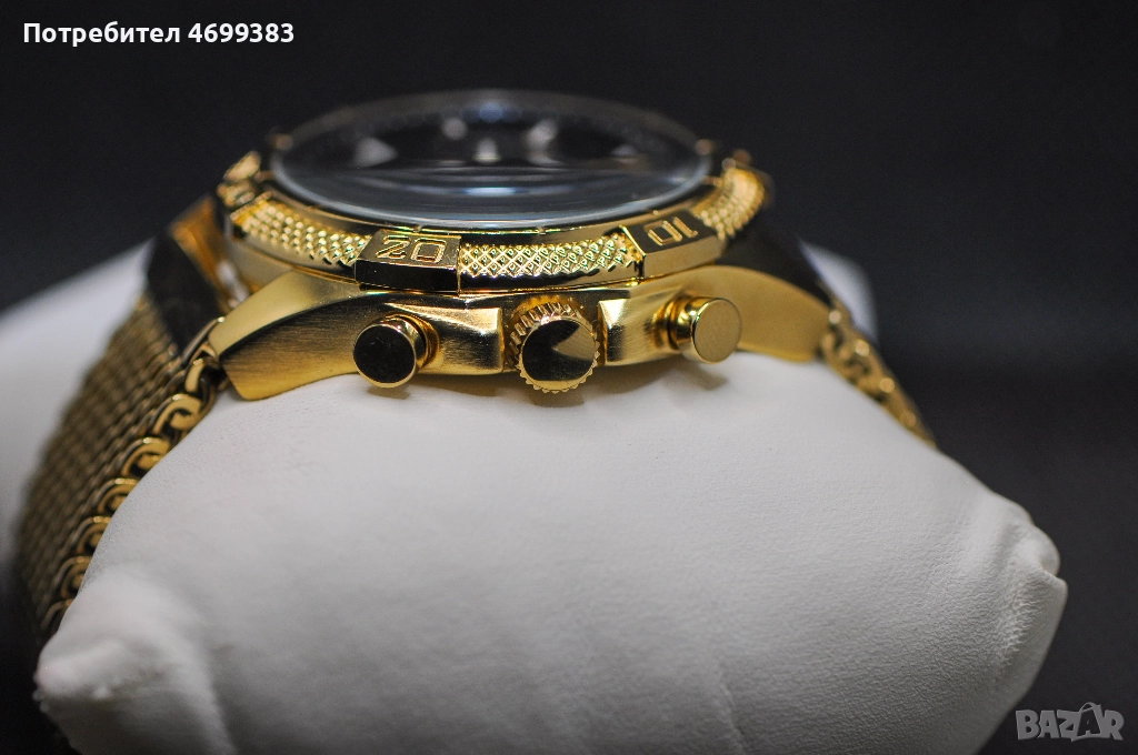 Механизъм: Miyota кварцов хронограф с батерия. Датник с големи цифри на 12 часа.