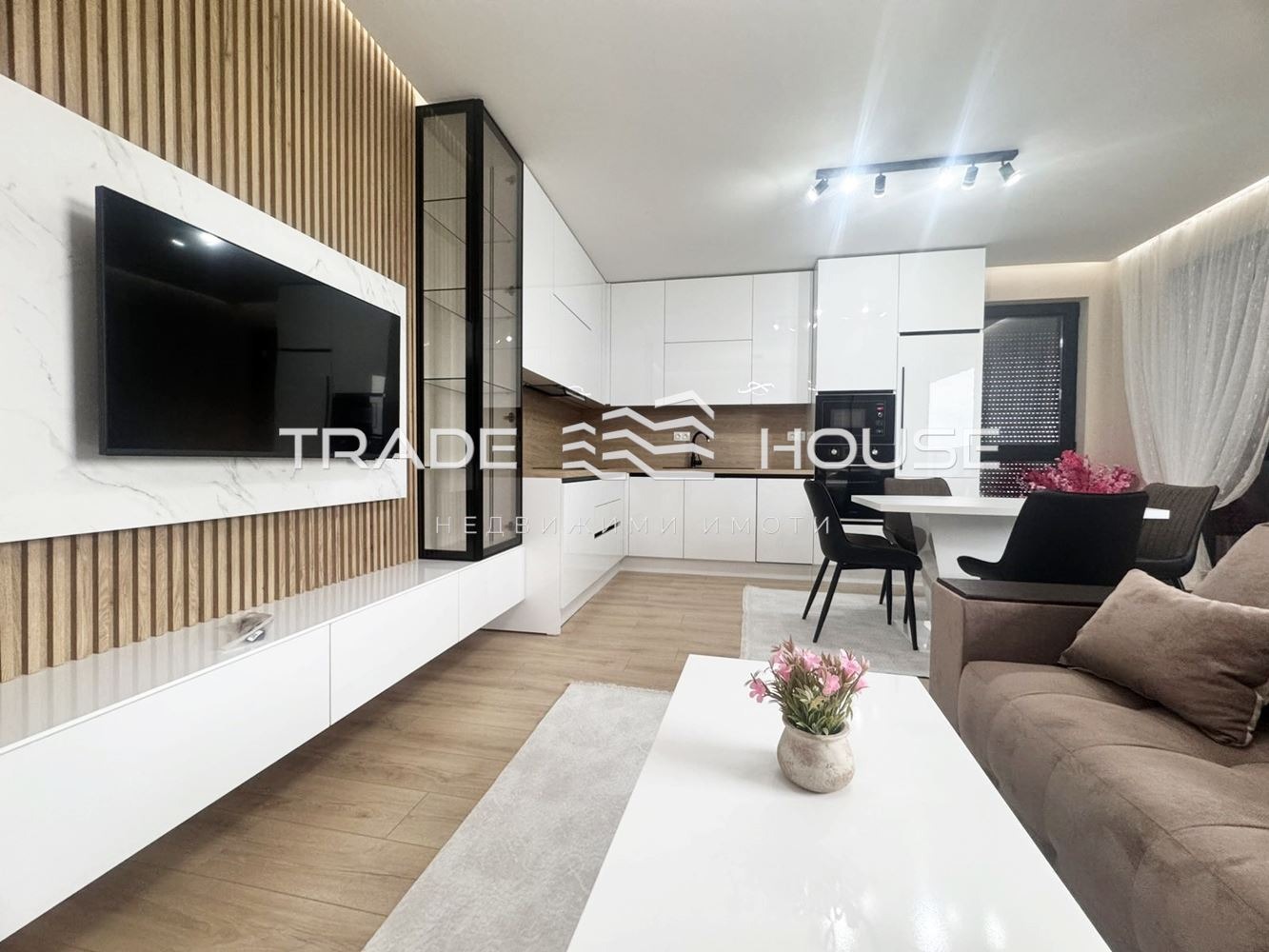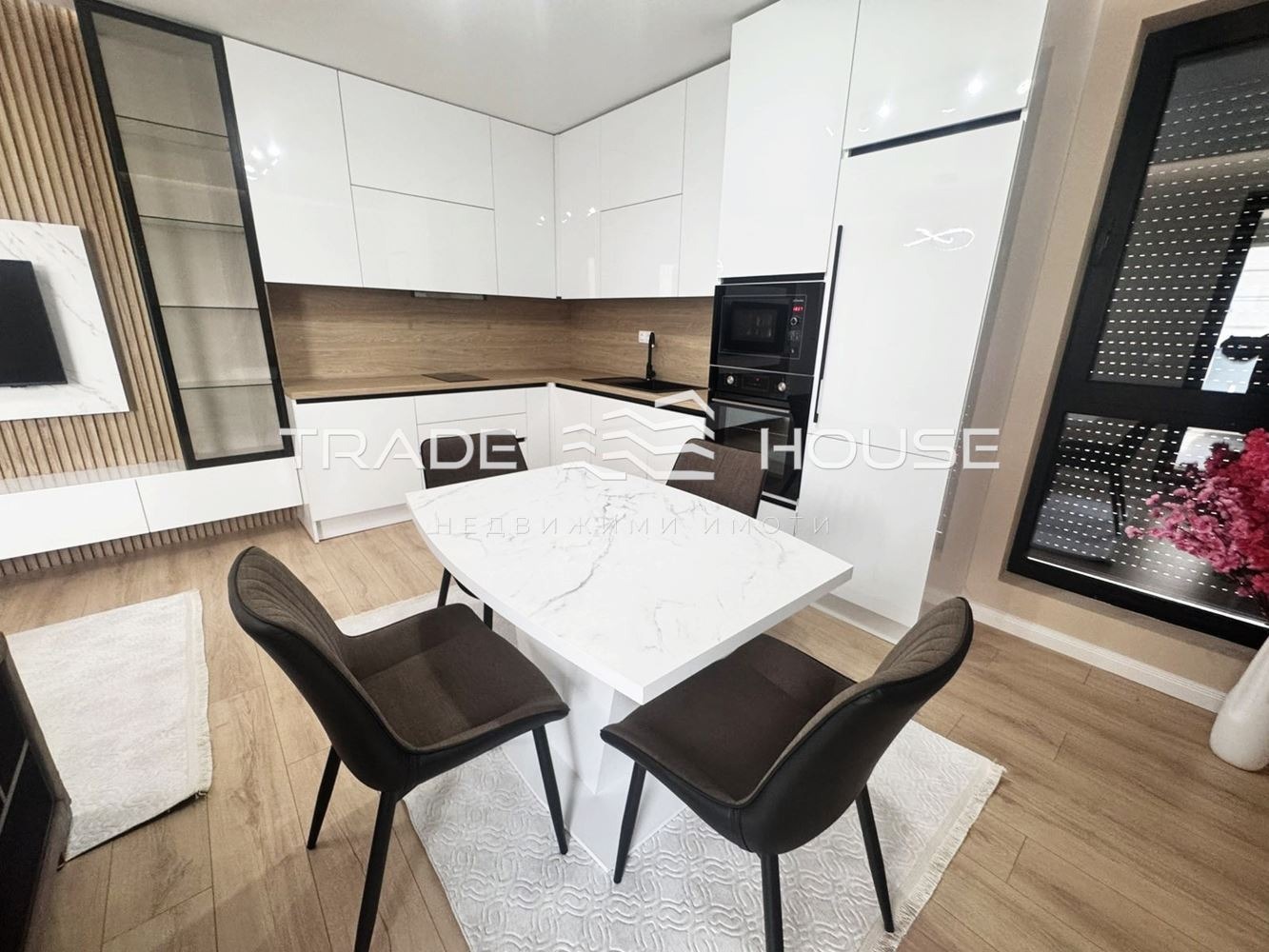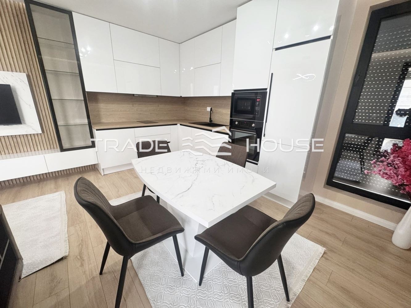 Разположен на 8-ми етаж в модерен нов комплекс с контролиран достъп, този имот впечатлява с елегантен интериор, качествени довършителни работи и стилна мебелировка.