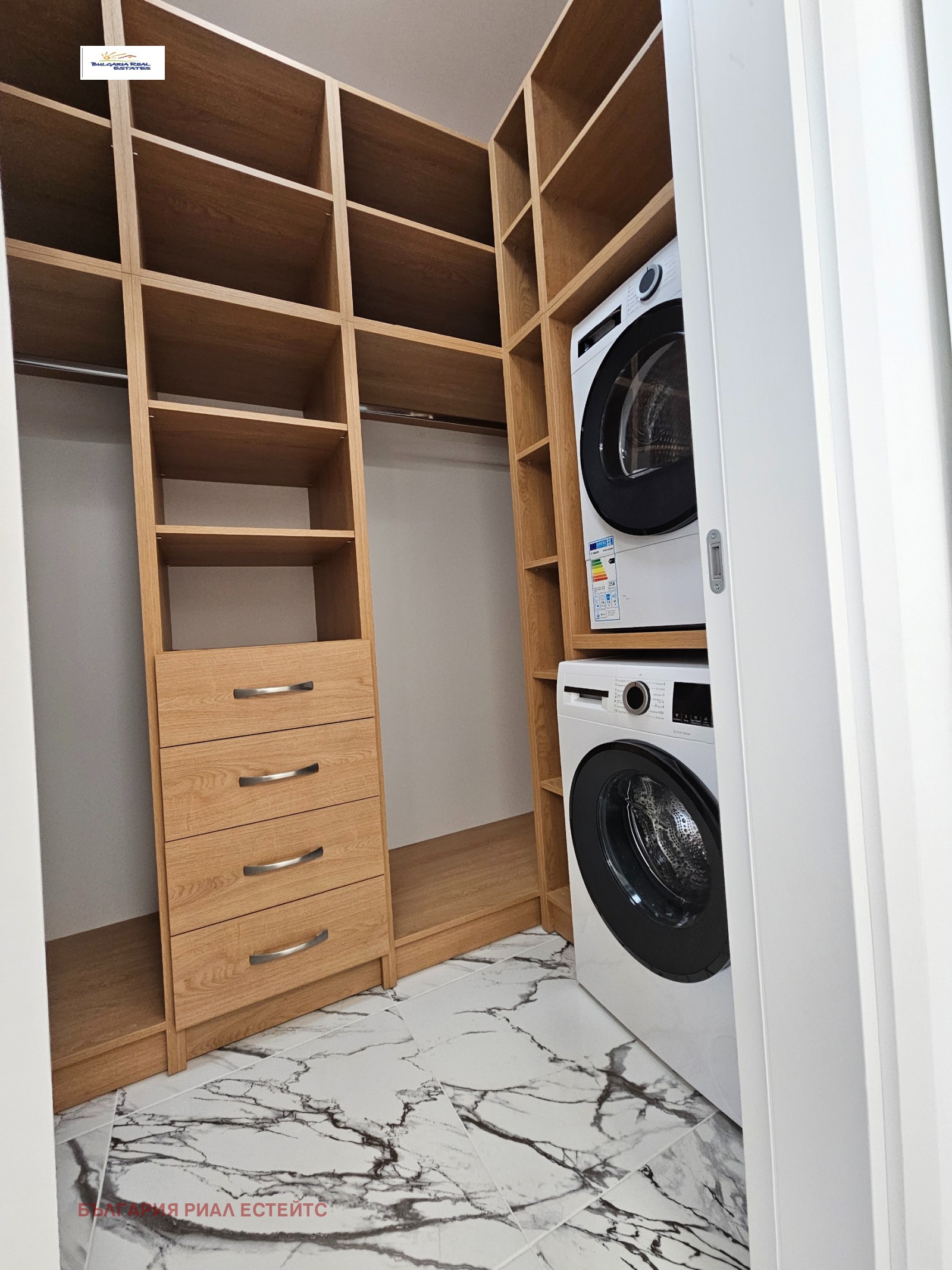 Най-висок клас довършителни, скъпи и комфортни мебели: естествен трислоен паркет, всички електроуреди в кухнята на марка BOSCH, хладилник LIBHERR, 2 климатика DAIKIN, освен отопление на газ, санитария HANSGROHE, ROCA.