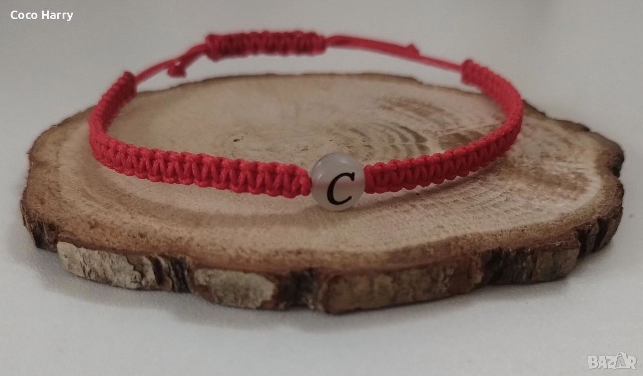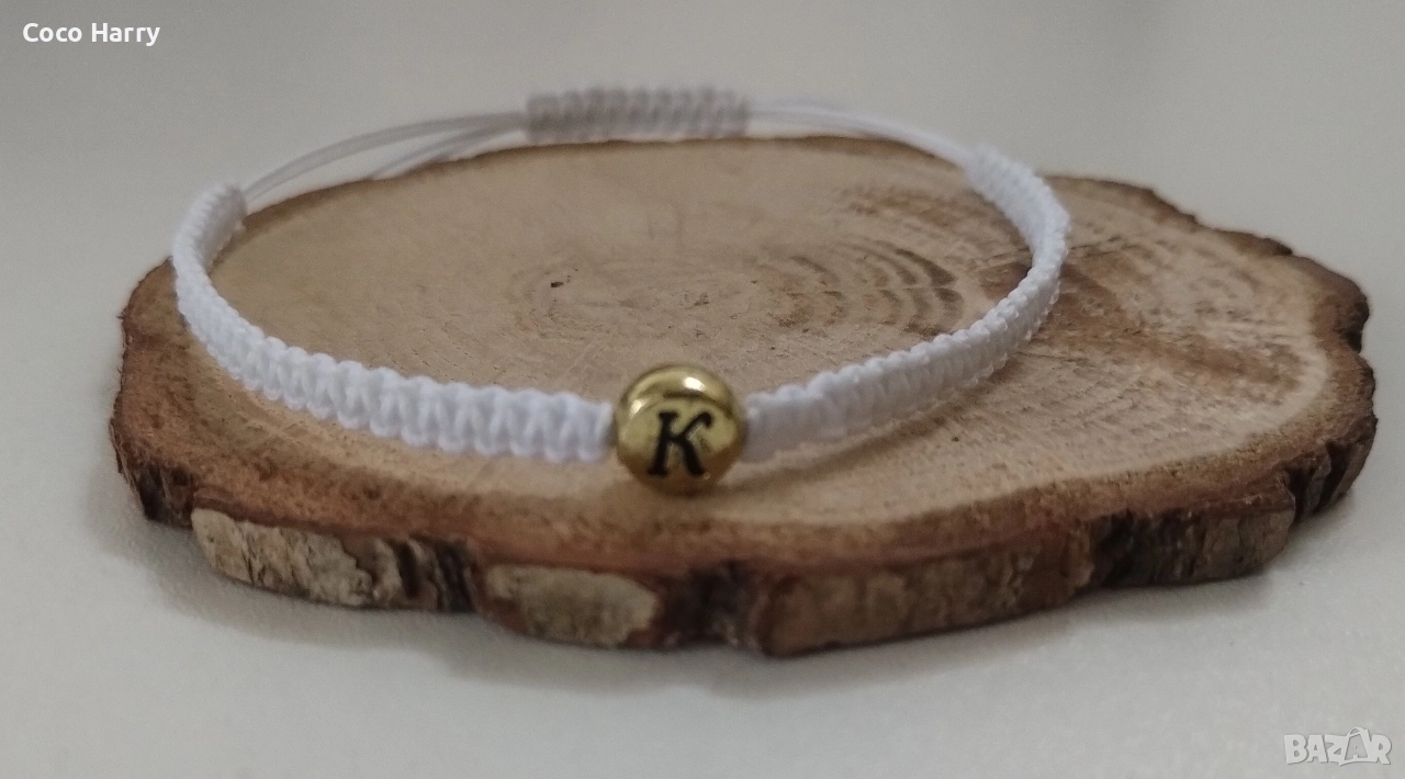 Гривна с буква,плетка макраме,ръчно изработена → Обява 52975479