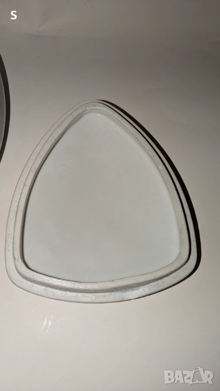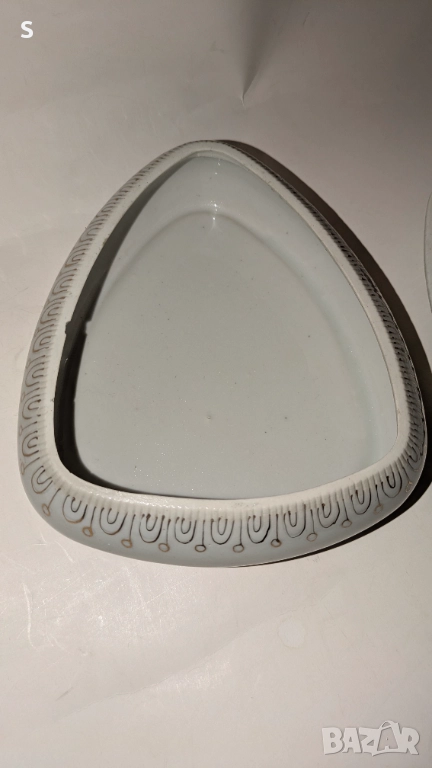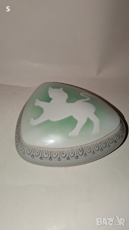 Порцеланова кутия за бижута произведена в България от СИП . Има малка забележка по вътрешния ръб . Вижда се на 5 снимка . Снимките са част от описанието.