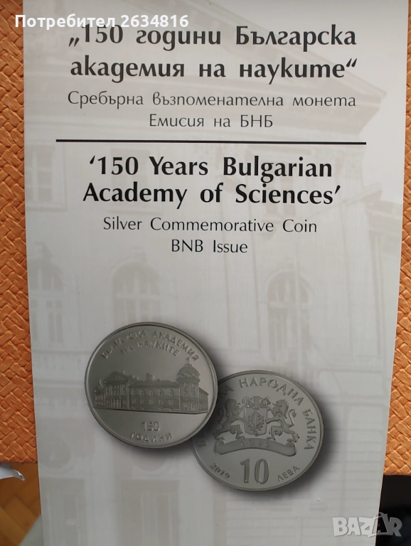 Сребърна у 10 лв 2019 г. " 150 години българска академия на науките " → Обява 52975904