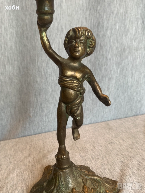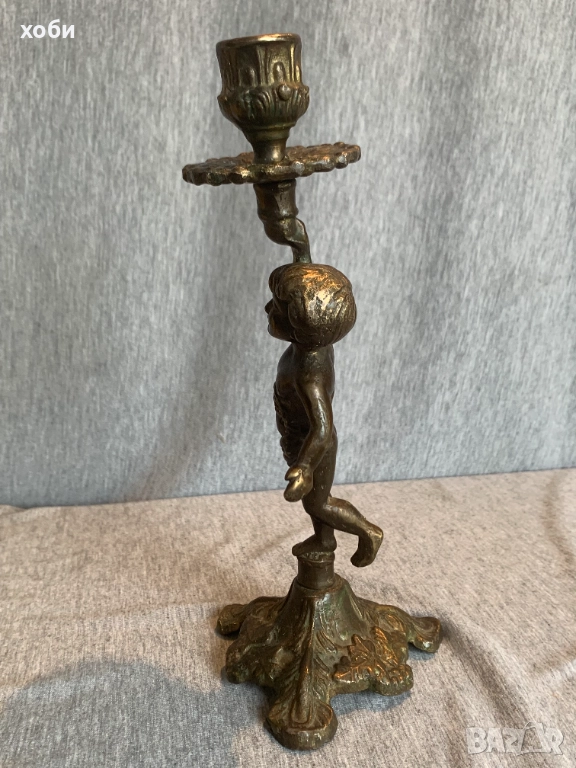 месингов свещник държач за свещ с ангел → Обява 52976138