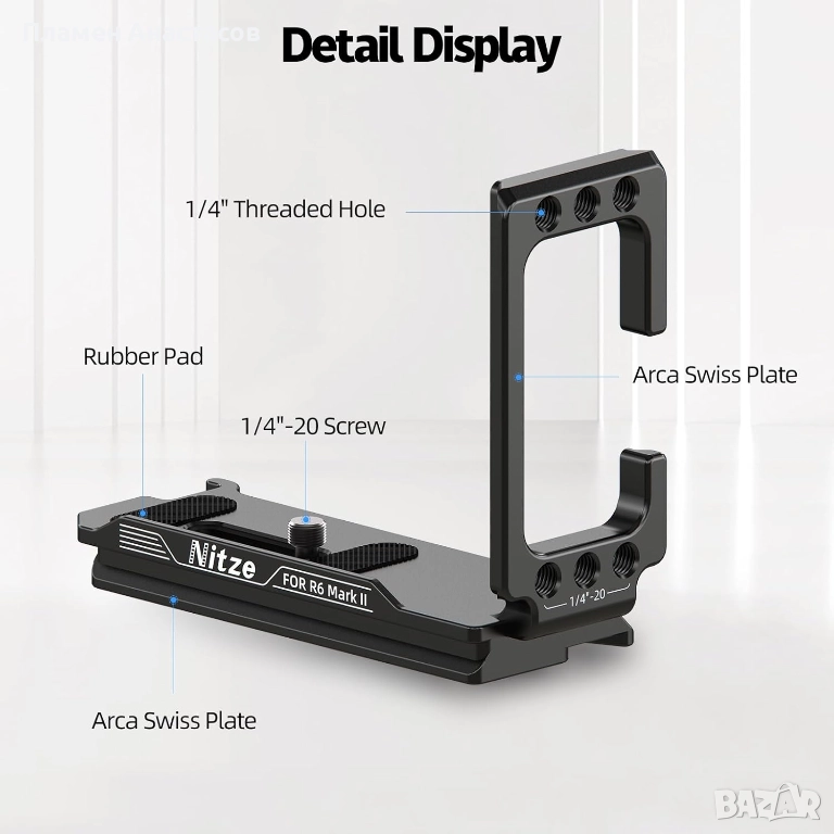 Nitze L-скобата е отличен избор за фотографи и видеографи, които работят с Canon R-серия и търсят надеждно, удобно и професионално решение за монтаж и разширяване на своята камера конфигурация.