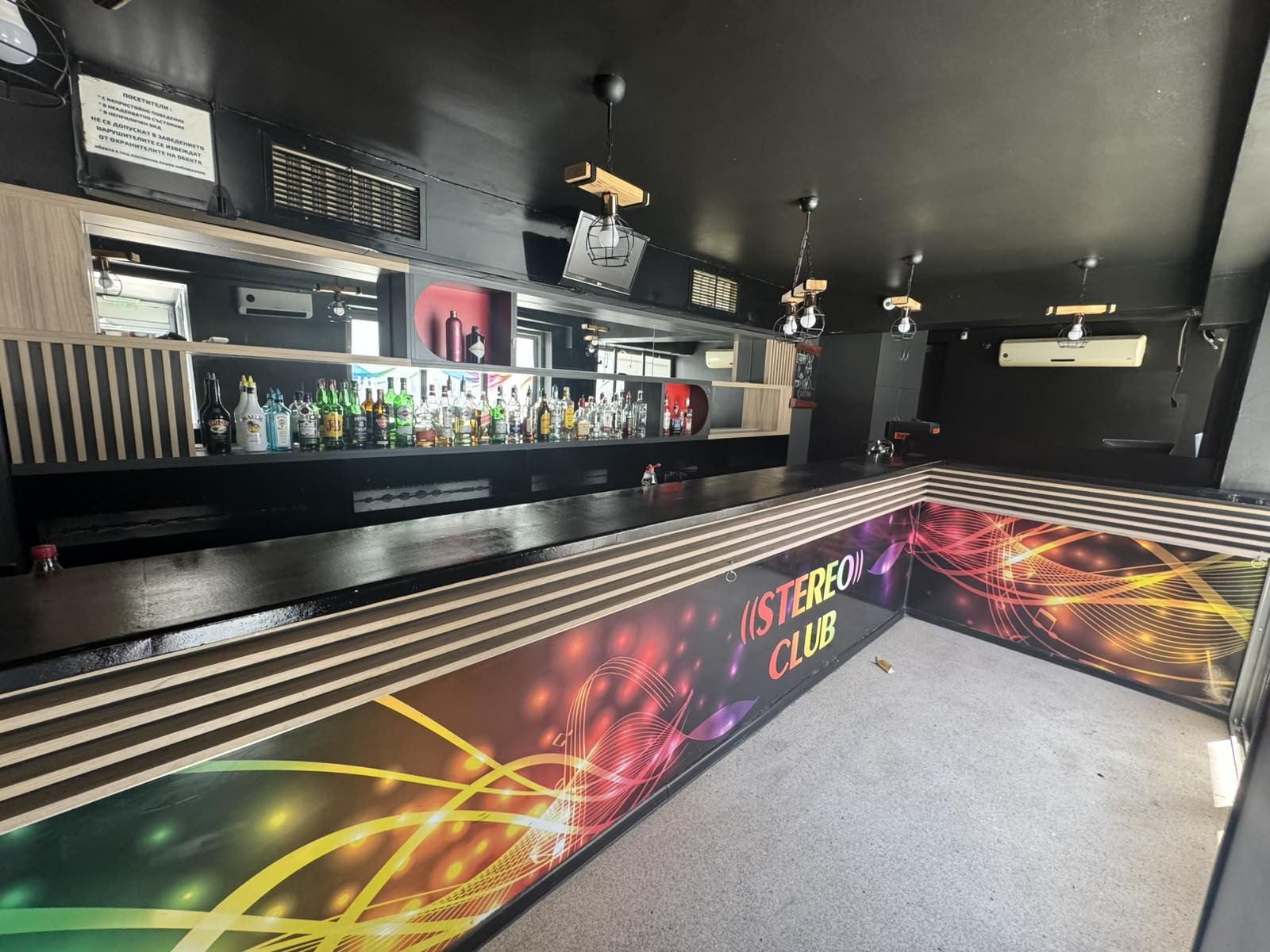 Възможност за закупуване на цялостно или частично задбарово оборудване, озвучителна и осветителна техника, климатици, както и претапицирана мека мебел и реновирана мебелировка за 15 000 лв.