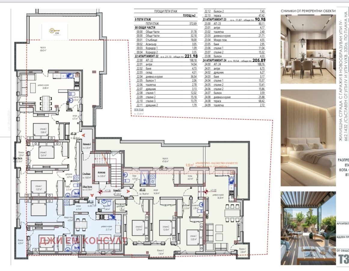 Посоченият 3-стаен апартамент е с площ 108,15 кв.м. общи части и 95,43 кв.м. чиста площ от които всекидневна с кухненски бокс 30,00 кв.м. две спални с площ от 14 кв.м. и 13 кв.м., антре,коридор, баня с тоалетна, отделно тоалетна и балкон!