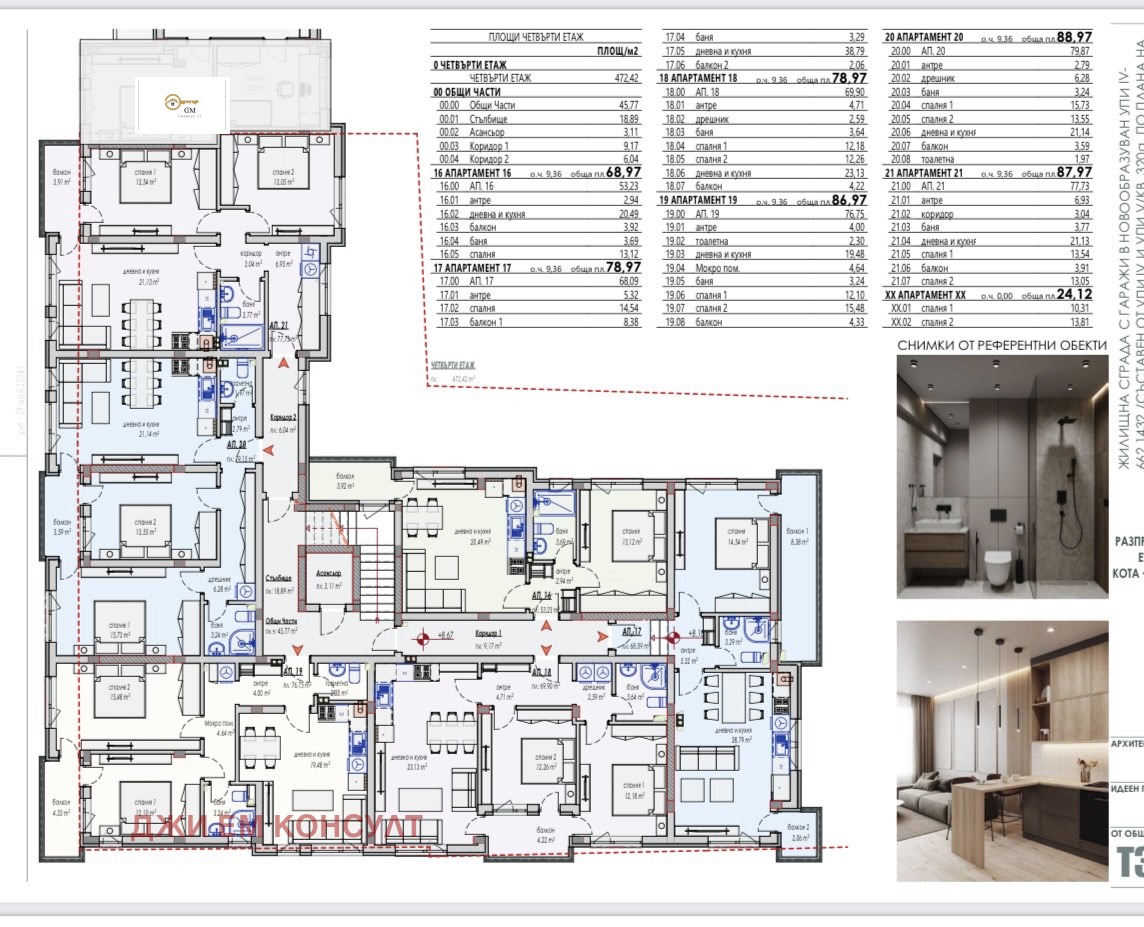 'Джи Ем Консулт' предлага за продажба 2-стайни, 3-стайни и два 4-стайни апартамента в новострояща се жилищна сграда на тиха улица с прекрасна гледка към града в 9-ти квартал на гр.Плевен. Имотът е проектиран в модерен стил, отговарящ на всички изисквания за удобство и комфорт на съвременно жилище, функционални разпределения. Сградата е изградена съгласно всички нови стандарти и материали от най-висок клас, ПВЦ дограма с троен стъклопакет, 12 см. топлоизолационен слой, луксозни общи части! Жилищата се издават на шпакловка и замазка!