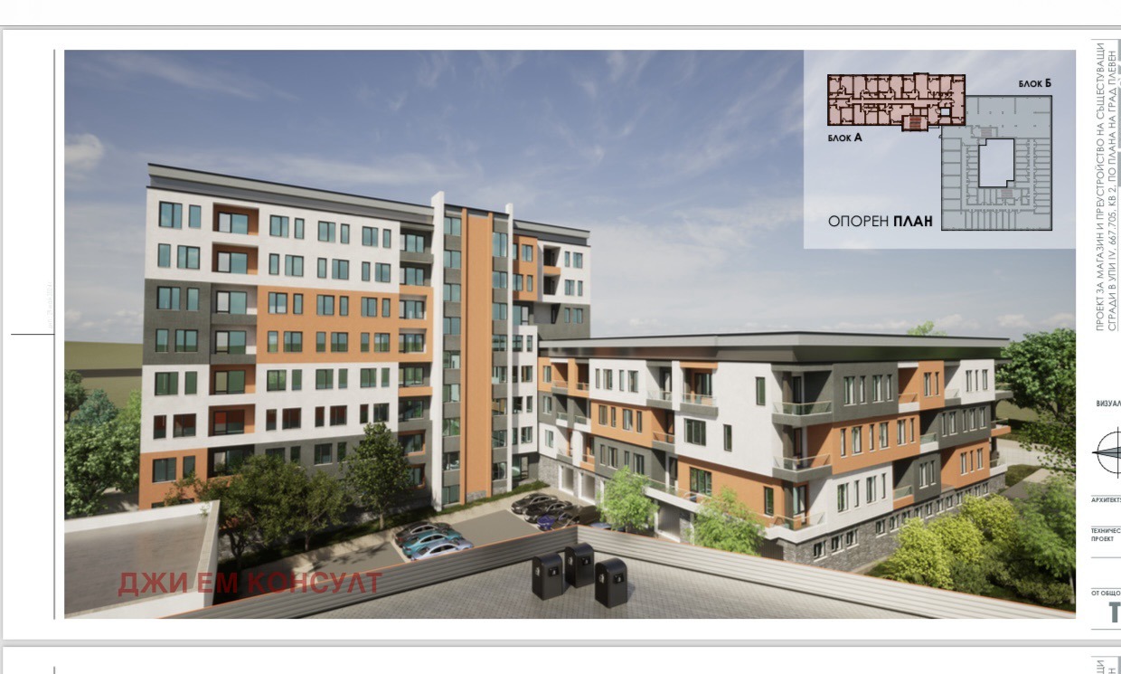 Многофамилната сграда се изпълнява спрямо съвременните стандарти за качество и нормите по БДС!Жилищният комплекс е съставен от два блока с етажност на блок А от 8 етажа и блок Б от 3 етажа с вътрешен двор със зони за отдих, детска площадка надземни гаражи, просторни входни пространства, фоайета и входове - всички условия за комфортен и спокоен живот. Налични са двустайни, тристайни и четиристайни апартаменти.