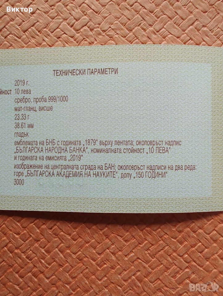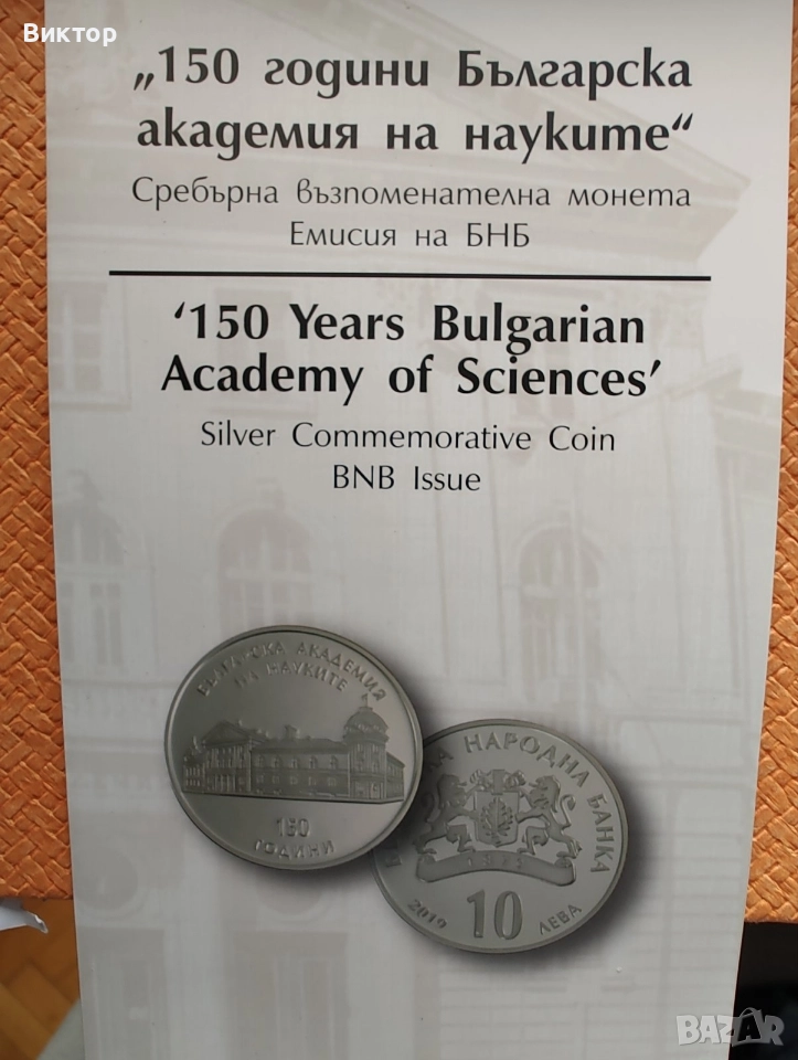Сребърна монета 10 лв 2019 г. " 150 г. Българска академия на науките" → Обява 52977686