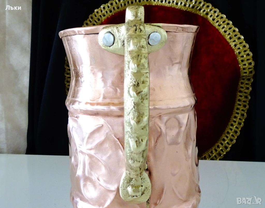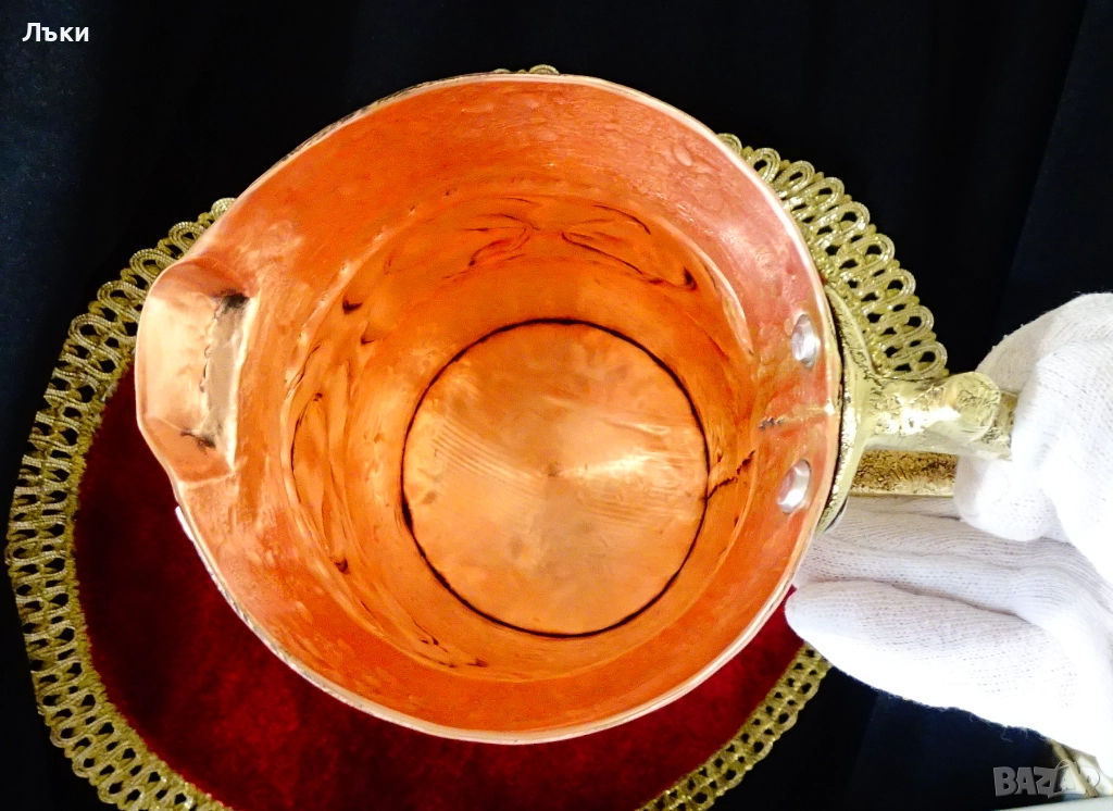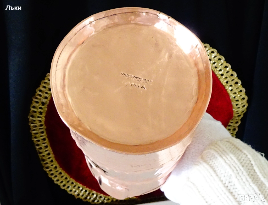 червена мед,маркирана от майстора Христопулос от гръцкия град Ламия.Има ефектен