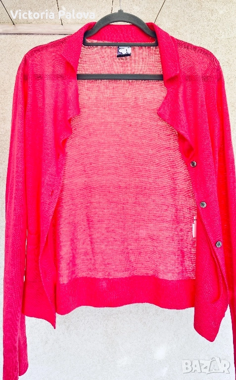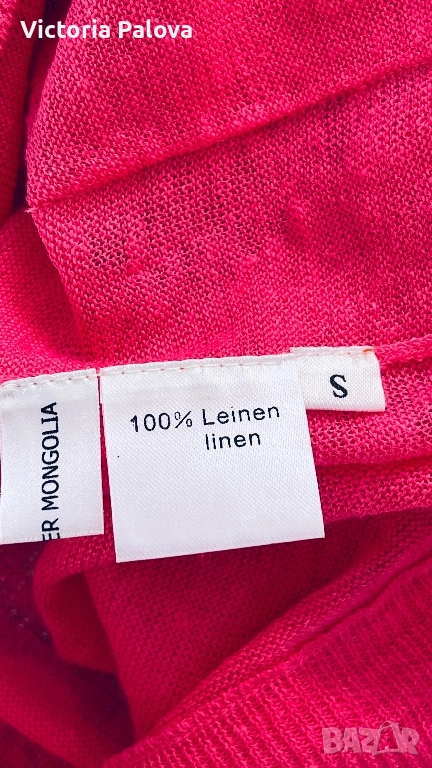 Ако търсите нещо свежо и оригинално за гардероба си - това е то! Прекрасна жилетка , различна от обикновените модели, произведена в Монголия от чист лен, дишаща и комфортна, с полупрозрачна плетка, може да се носи разкопчана с потник и на голо тяло според стилове. Цветът е бонбонено розов - vibrant hot pink или fuchsia , който е доста необичаен за ленени дрехи и привлича погледи с яркостта си. “Носиш я и светът става по - ярък, сякаш напомня, че щастието е в малките цветни случайности”.😃 Рамо - 42-44см, ГО - 42-44см, дължина - 60см, ръкав - 66см.