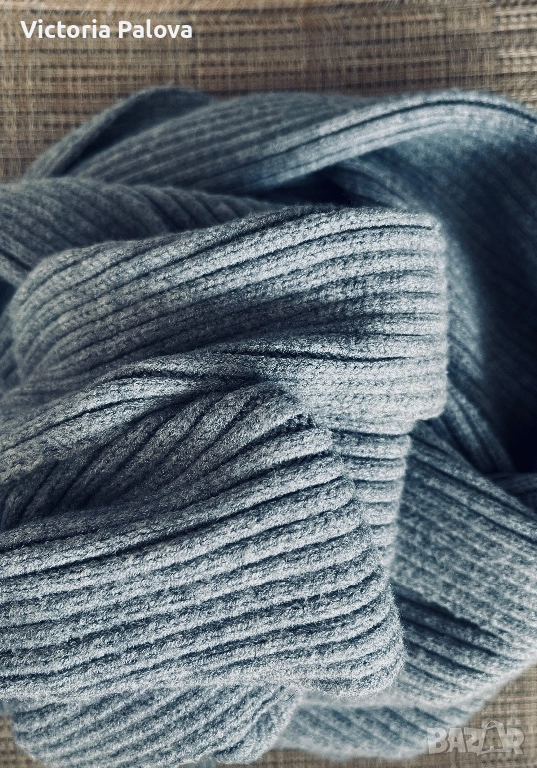 Тежък плътен и приятно разтеглив шал от модерна рипсена плетка, който пада красиво и придава истинско усещане за комфорт и качество. Материята е мека и еластична, благодарение на което ширината варира от 44см до 54см според начина на носене, а впечатляващата дължина 225см позволява лесно наметване, многократно омотаване или по- небрежна, свободна стилизация. Цветът е елегантен и универсален - стои чудесно както с палта и якета, така и с други зимни плетива. Перфектен избор за тези, които обичат качествени и модерни аксесоари.