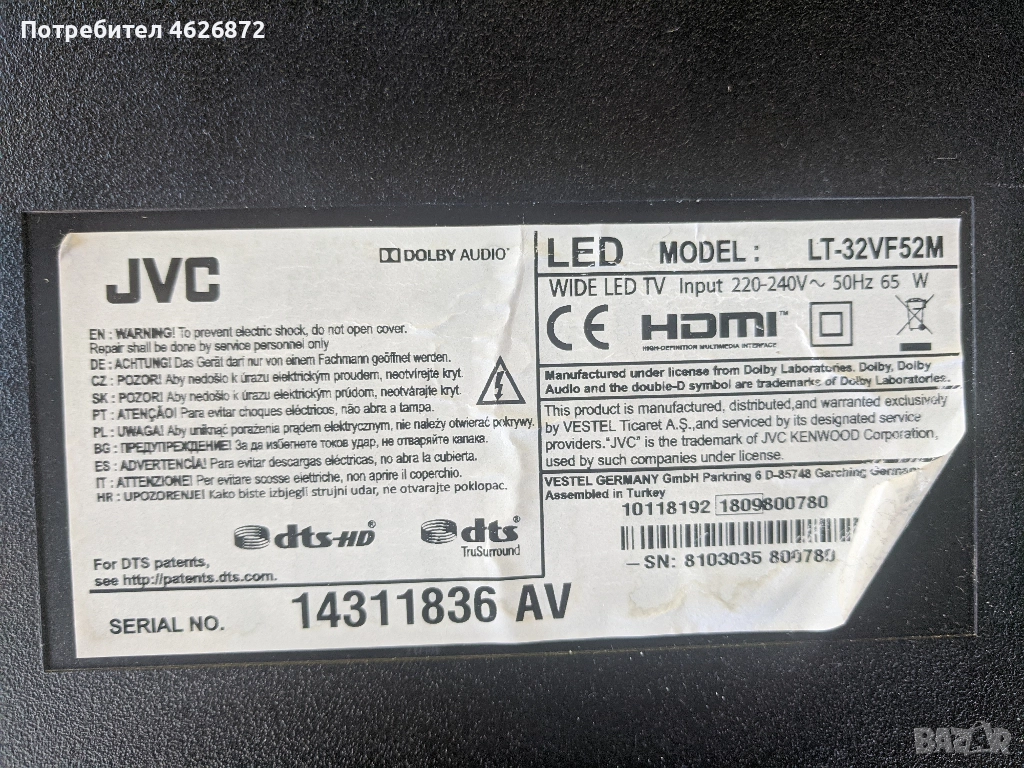 JVC-LT32VF52M-17MB211S-17 IPS62-32T42COK CTRL BD, снимка 1 - Части и Платки - 52978730 JVC-LT32VF52M-17MB211S-17 IPS62-32T42COK CTRL BD, снимка 2 - Части и Платки - 52978730 JVC-LT32VF52M-17MB211S-17 IPS62-32T42COK CTRL BD, снимка 3 - Части и Платки - 52978730 JVC-LT32VF52M-17MB211S-17 IPS62-32T42COK CTRL BD, снимка 4 - Части и Платки - 52978730 JVC-LT32VF52M-17MB211S-17 IPS62-32T42COK CTRL BD, снимка 5 - Части и Платки - 52978730 JVC-LT32VF52M-17MB211S-17 IPS62-32T42COK CTRL BD, снимка 6 - Части и Платки - 52978730 JVC-LT32VF52M-17MB211S-17 IPS62-32T42COK CTRL BD, снимка 7 - Части и Платки - 52978730 JVC-LT32VF52M-17MB211S-17 IPS62-32T42COK CTRL BD, снимка 8 - Части и Платки - 52978730 1/8