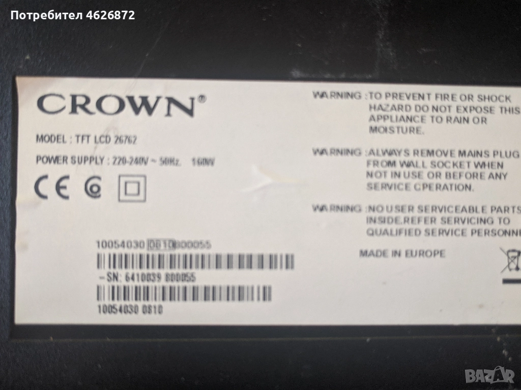 . CROWN TFT LCD 26762-17MB22-2-17IPW22-4-126ОВ-12F-V260B1-C01 → Обява 52978918