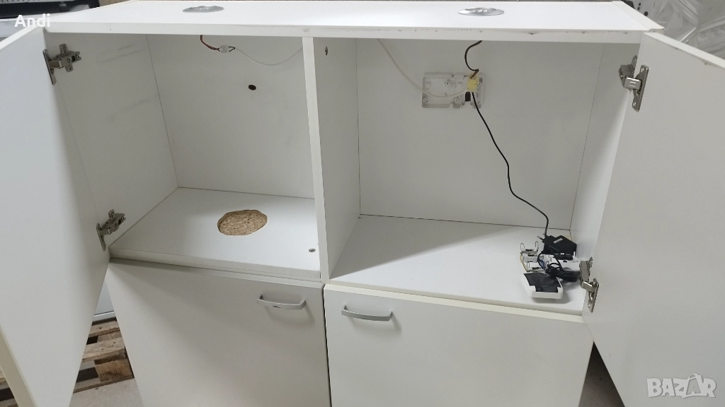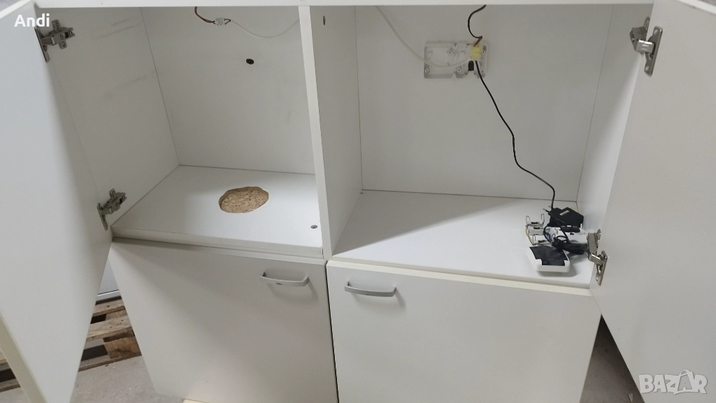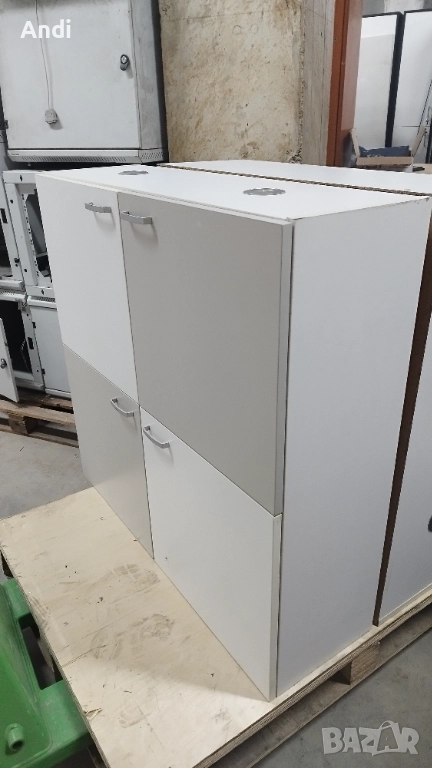 Продавам Шкаф за стена с 4 врати шахматно разположени две бели и две сиви с размер ширина 100см, височина 100 см и дълбочина 35см. Шкафа е подходящ за детска стая като става за дрехи или играчки а може и за други неща, в горните отделения има рафтове а долните за без рафтове. В долната страна на шкафа има монтирани лунички 2бр.