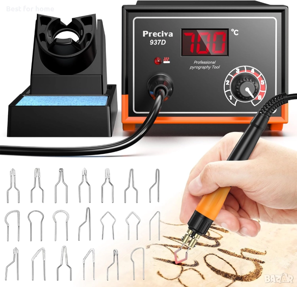 Стабилна стойка: Комплектът включва метална стойка за поялника и гъба за почистване на накрайника.