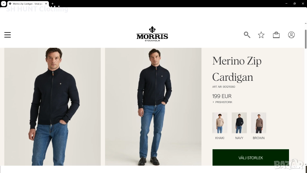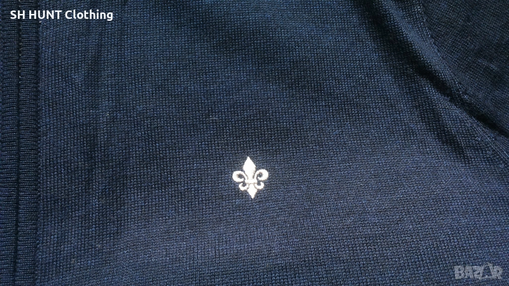 Марка: MORRIS Merino Zip Cardigan 100% Merino Wool - жилетка 100% Мерино вълна L252-24 Размер: L - ширина под мишниците 59 см , разтяга се до 72 см , дължина 76 см заедно с яката , 69 см без яката.