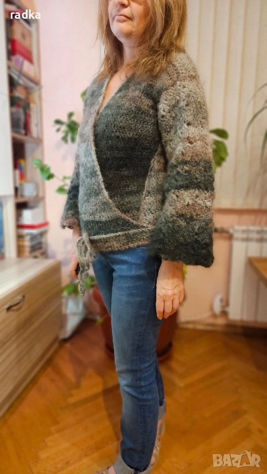 Ръчно плетен пуловер - жилетка → Обява 52979149