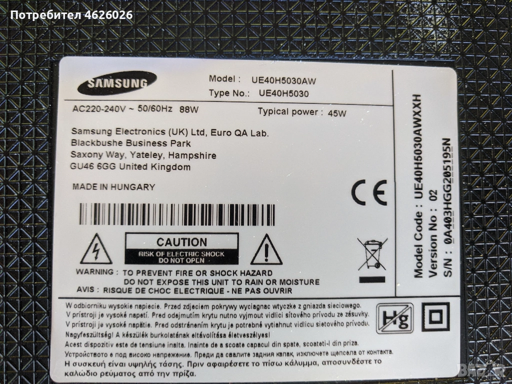 ЗАХРАНВАНЕ-BN44-00698A-60лв