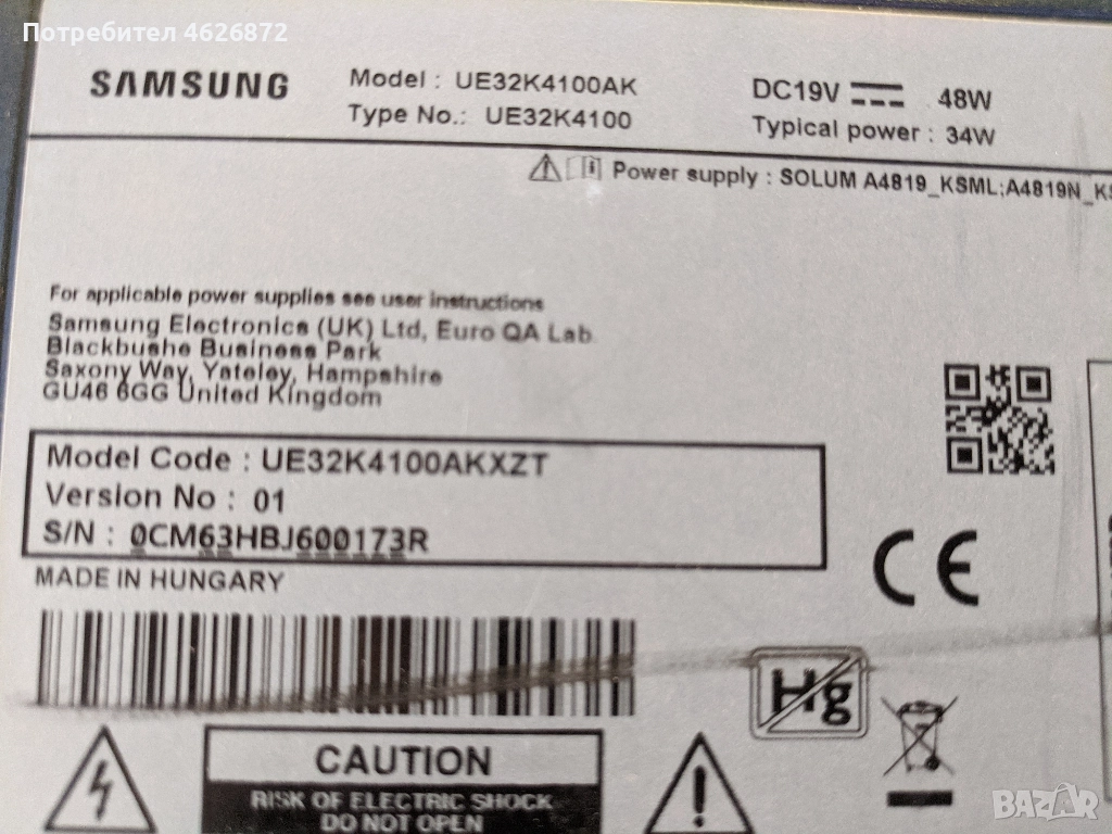 SAMSUNG UE32K4100AK-BN41-02530A → Обява 52979422