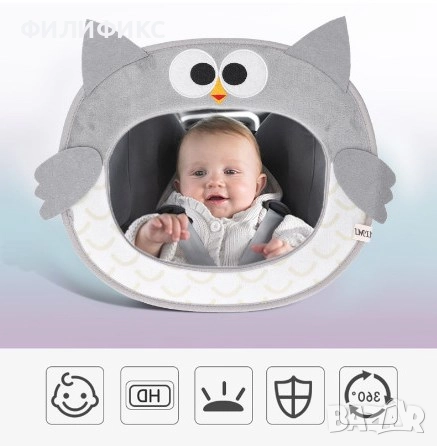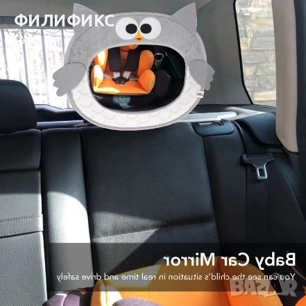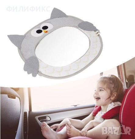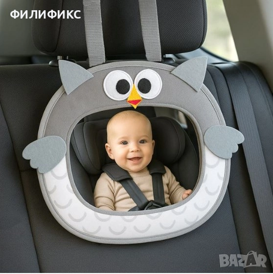 огледало за обратно виждане**, специално проектирано за **наблюдение на бебета и деца** в задната седалка.