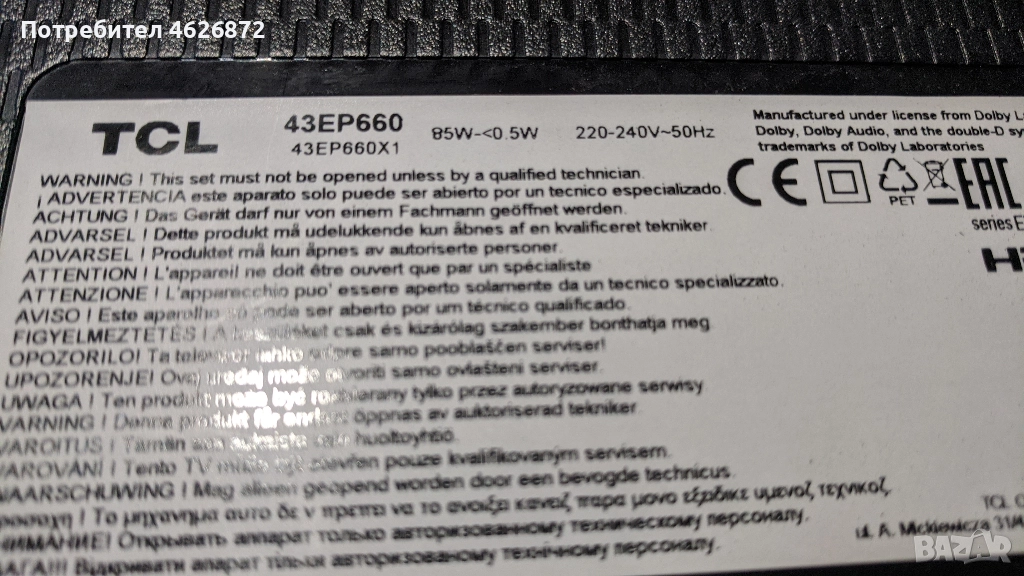 TCL 43EP660X1-40-RT51T1-MAB2HG-08-L12NHHA2-PW210AA , снимка 1 - Части и Платки - 52979521 TCL 43EP660X1-40-RT51T1-MAB2HG-08-L12NHHA2-PW210AA , снимка 2 - Части и Платки - 52979521 TCL 43EP660X1-40-RT51T1-MAB2HG-08-L12NHHA2-PW210AA , снимка 3 - Части и Платки - 52979521 TCL 43EP660X1-40-RT51T1-MAB2HG-08-L12NHHA2-PW210AA , снимка 4 - Части и Платки - 52979521 TCL 43EP660X1-40-RT51T1-MAB2HG-08-L12NHHA2-PW210AA , снимка 5 - Части и Платки - 52979521 TCL 43EP660X1-40-RT51T1-MAB2HG-08-L12NHHA2-PW210AA , снимка 6 - Части и Платки - 52979521 TCL 43EP660X1-40-RT51T1-MAB2HG-08-L12NHHA2-PW210AA , снимка 7 - Части и Платки - 52979521 TCL 43EP660X1-40-RT51T1-MAB2HG-08-L12NHHA2-PW210AA , снимка 8 - Части и Платки - 52979521 TCL 43EP660X1-40-RT51T1-MAB2HG-08-L12NHHA2-PW210AA , снимка 9 - Части и Платки - 52979521 TCL 43EP660X1-40-RT51T1-MAB2HG-08-L12NHHA2-PW210AA , снимка 10 - Части и Платки - 52979521 1/10