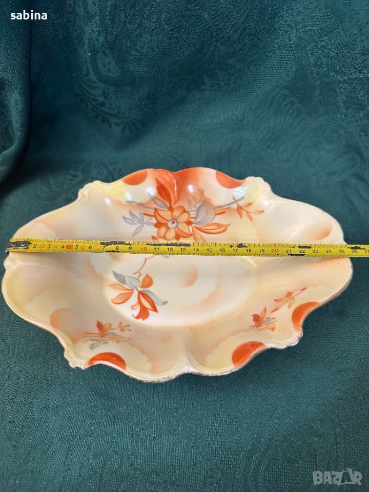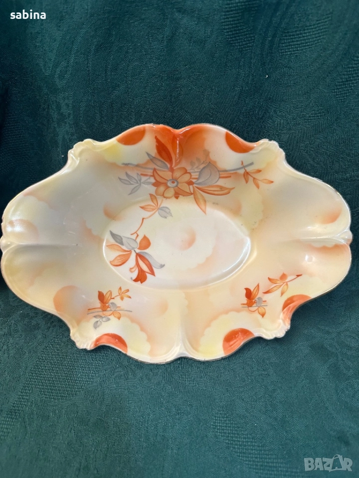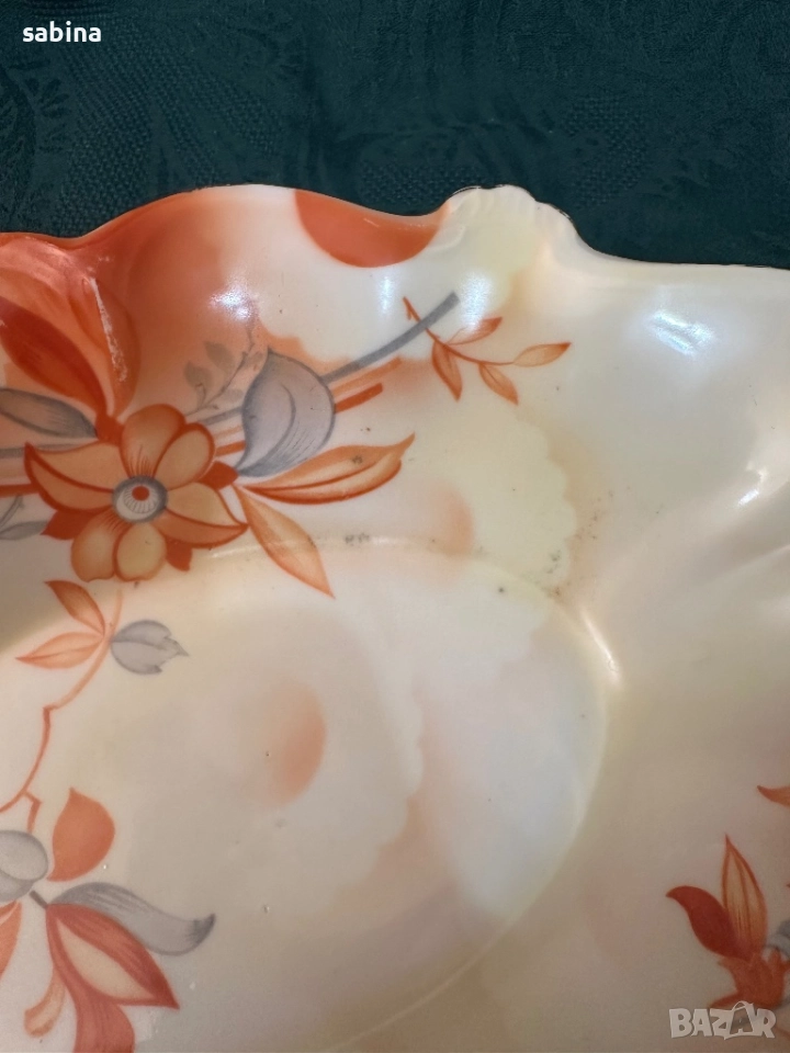 Анрикварна фруктиера на К.Steinmann от периода 1930-1935 г. Дължина 26 см, ширина 17,5 см, височина 5,5 см. Много добро състояние, само с няколко фабрични точки и зацапване.