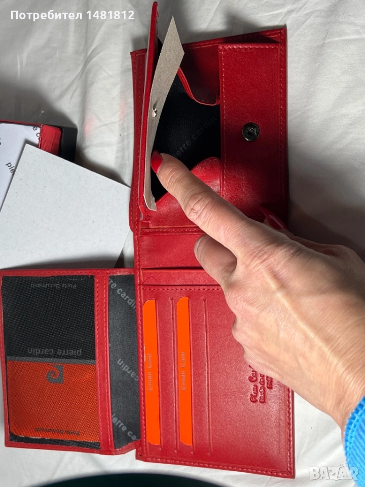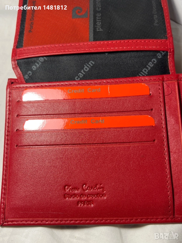 Портмоне Pierre Cardin в червен цвят,множество отделения за карти и визитки,монетник и отделения за банкноти