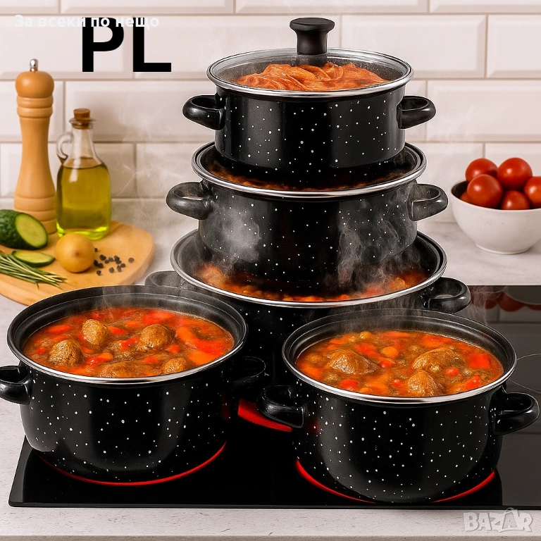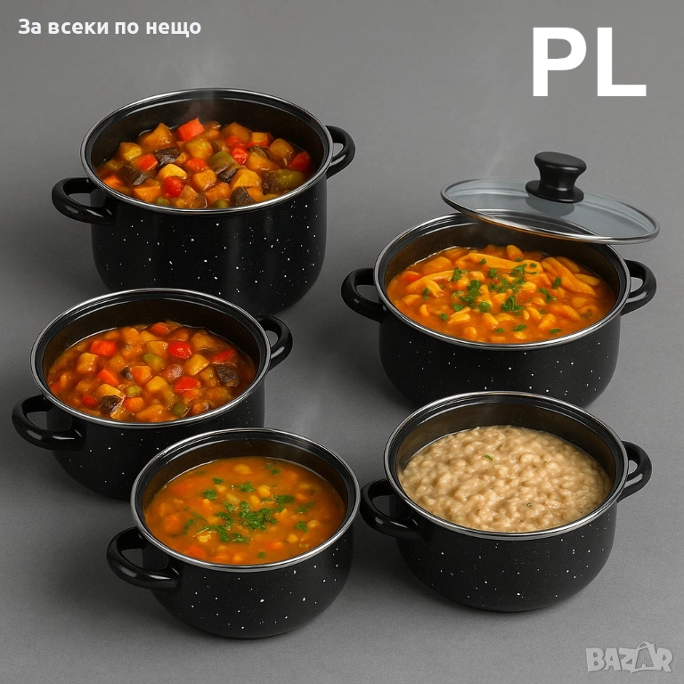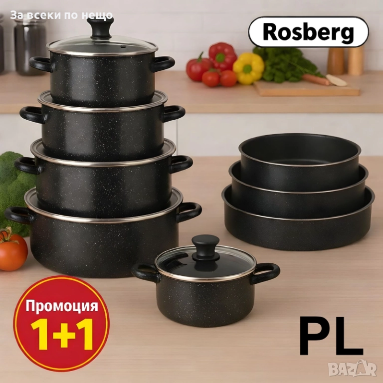 Промо комплект – 5 бр. черни емайлирани тенджери + 3 бр. дълбоки черни тави Rosberg Код P1753
