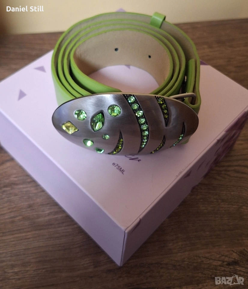 3. Зелен дамски колан с метална тока с инкрустирани камъни по нея - цена 12 евро.