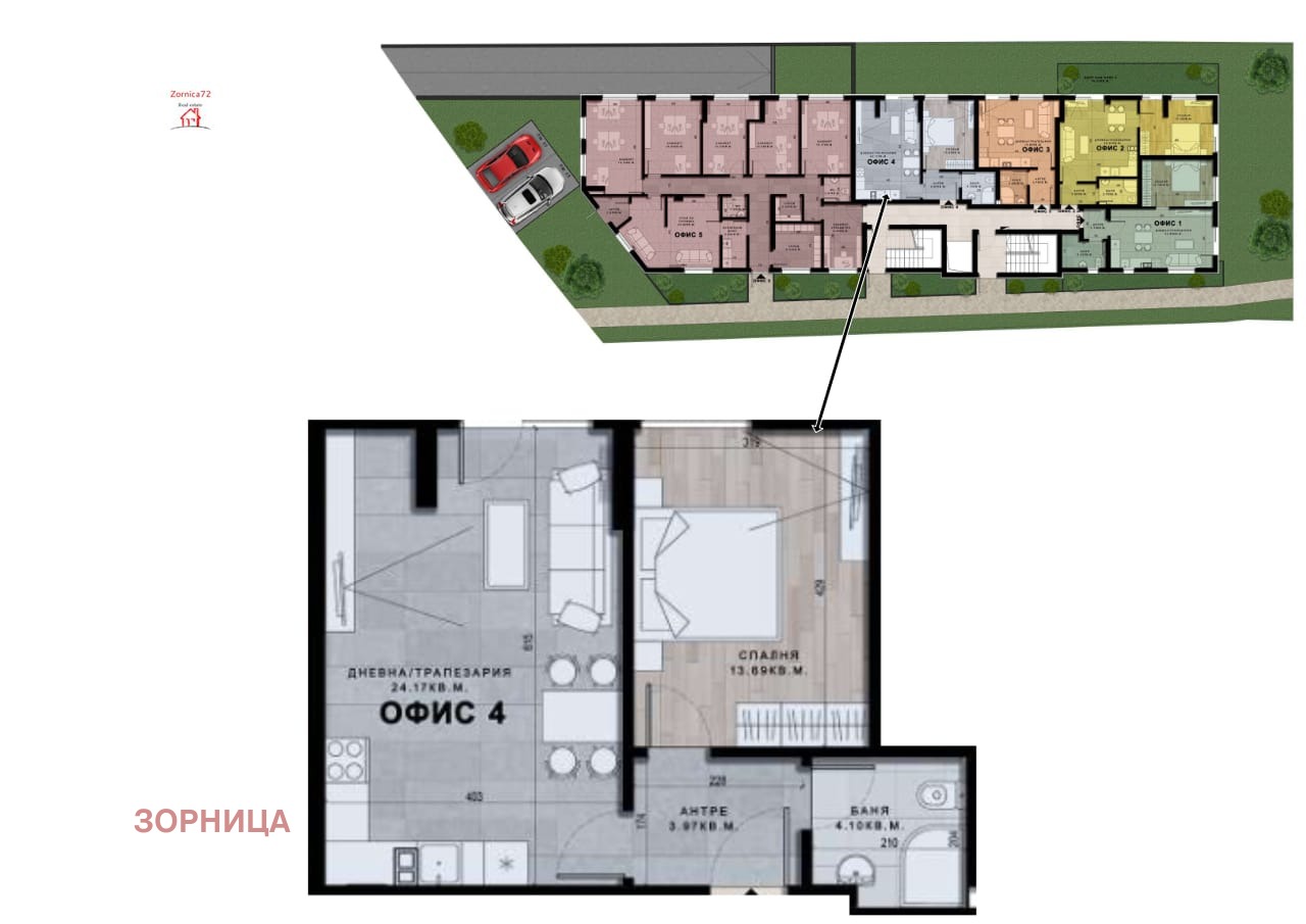 Пред акт 16. Предаставяме Ви прекрасен имот ОФИС 4, със застроена площ от 57кв.м.Изключително луксозна сграда с очакван АКТ 16 - до март 2026г. с мазилка със специални лъскави, искрящи на дневна светлина, нишки. Доказан строител, със завършени бутикови обекти, строи сградата със собствени средства.Представяме Ви имот със статут на офис, но изграден като апартамент в малка елегантна и модерна сграда с 15 апартамента, изключително луксозно изпълнение, до парк Въртопо и до метростанция Младост 1. Има следното разпределение: коридор, от който се влиза в баня и тоалетна, просторна дневна и спалня. Мястото е неповторимо поради непосредствената близост до парка и същевременно на метри от пазара на Младост 1 и магазин фантастико. Огледи се правят САМО В РАБОТНИ ДНИ МЕЖДУ 9 и 17.00ч.!В същата сграда в съседство се продават още три имота със статут наа офиси, но изградени като апартаменти и още няколко тристайни апартаменти на цени от 2200евро на кв.м. до 2400евро на кв.м., в съседната сграда - два огромни мезонета. За повече информация и огледи, се свържете с Елена Цветанова на тел.0889295954