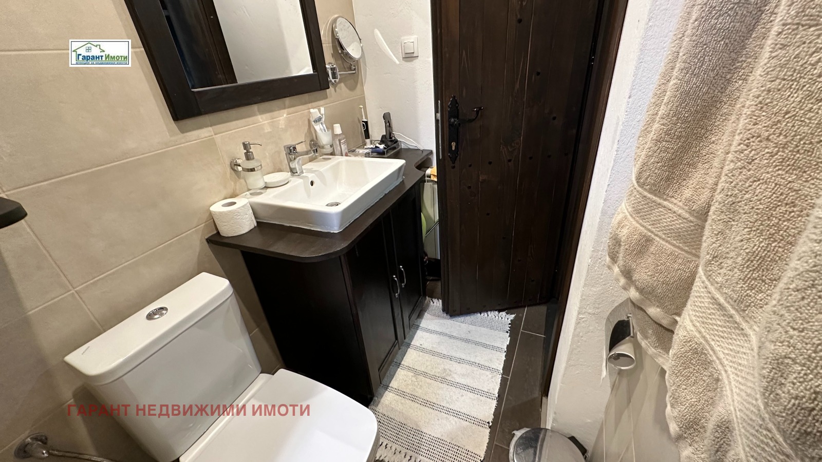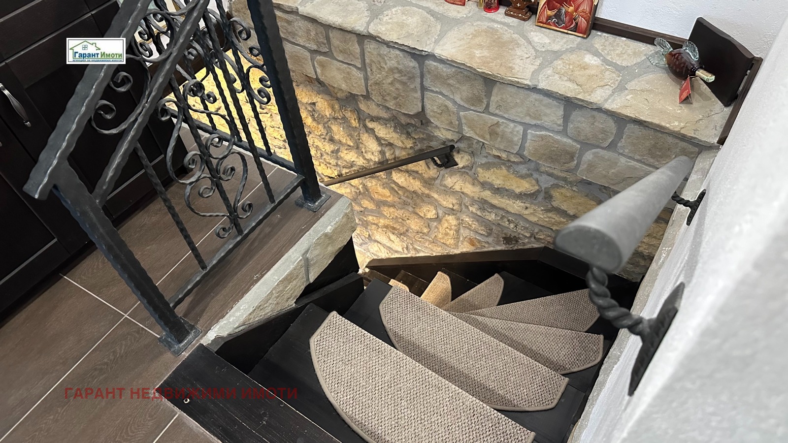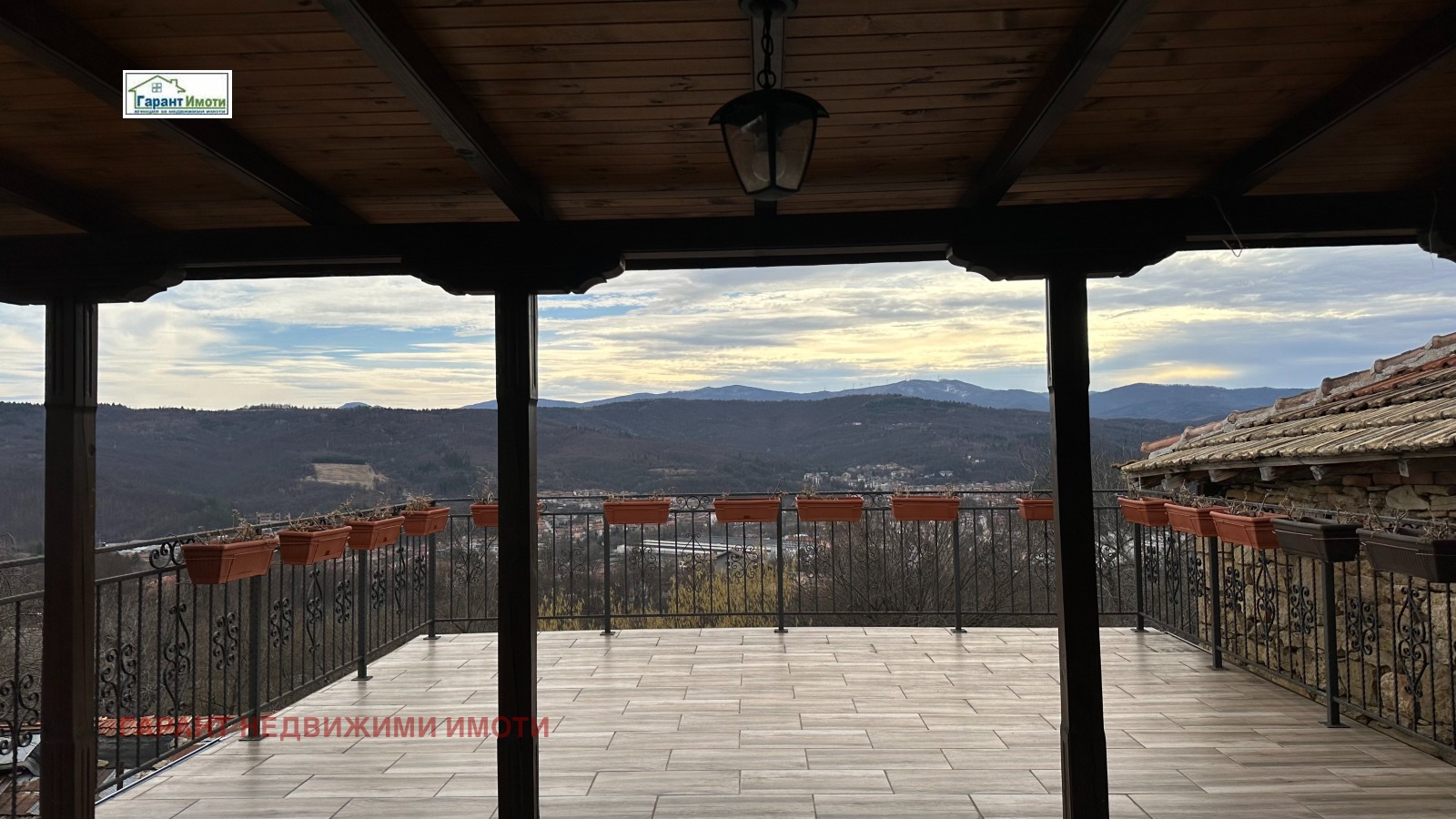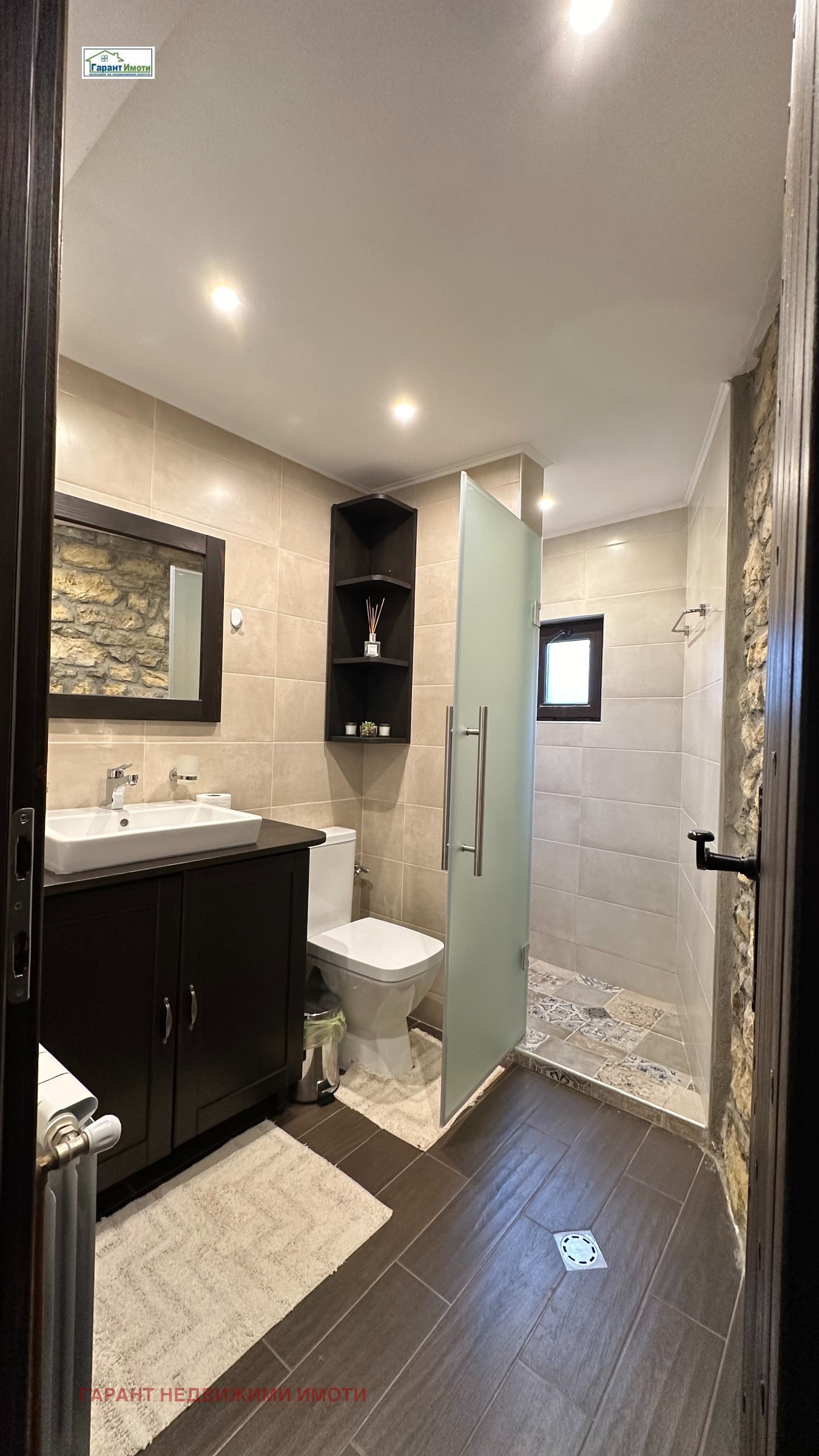 ГАРАНТ имоти продава къща с голямо дворно място на атрактивна локация само на 3 км от град Трявна. До имота се достига по изцяло асфалтов път с целогодишен достъп. В дворно място с площ 2343 кв.м са разположени изцяло реновирана двуетажна къща с пристройка във Възрожденски стил - обща площ 189 кв.м и две стопански постройки. На жилищната площ са разпределени голяма кухня-трапезария-дневна, четири спални, три бани с тоалетна, голяма тераса с панорамна гледка, сервизно, котелно, мокро помещение в едно. Извършен е цялостен ремонт - каменни основи, бетонна плоча между двата етажа, дренаж, външна топлоизолация 10 см, изолация на таваните с каменна вата, висококачествена PVC дограма, нови ВиК и ел. инсталации, монтиран е слънчев колектор за топла вода на покрива. Ръчно изработените парапети от ковано желязо и масивната портална врата допълват цялостния стил на имота. Отоплението е решено чрез пелетен котел и радиатори във всички стаи, като в трапезарията и спалнята на първия етаж има и подово отопление.