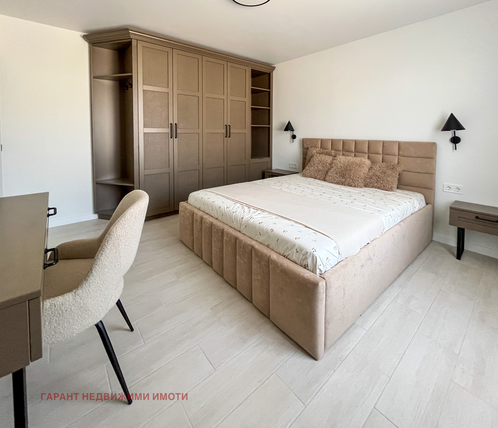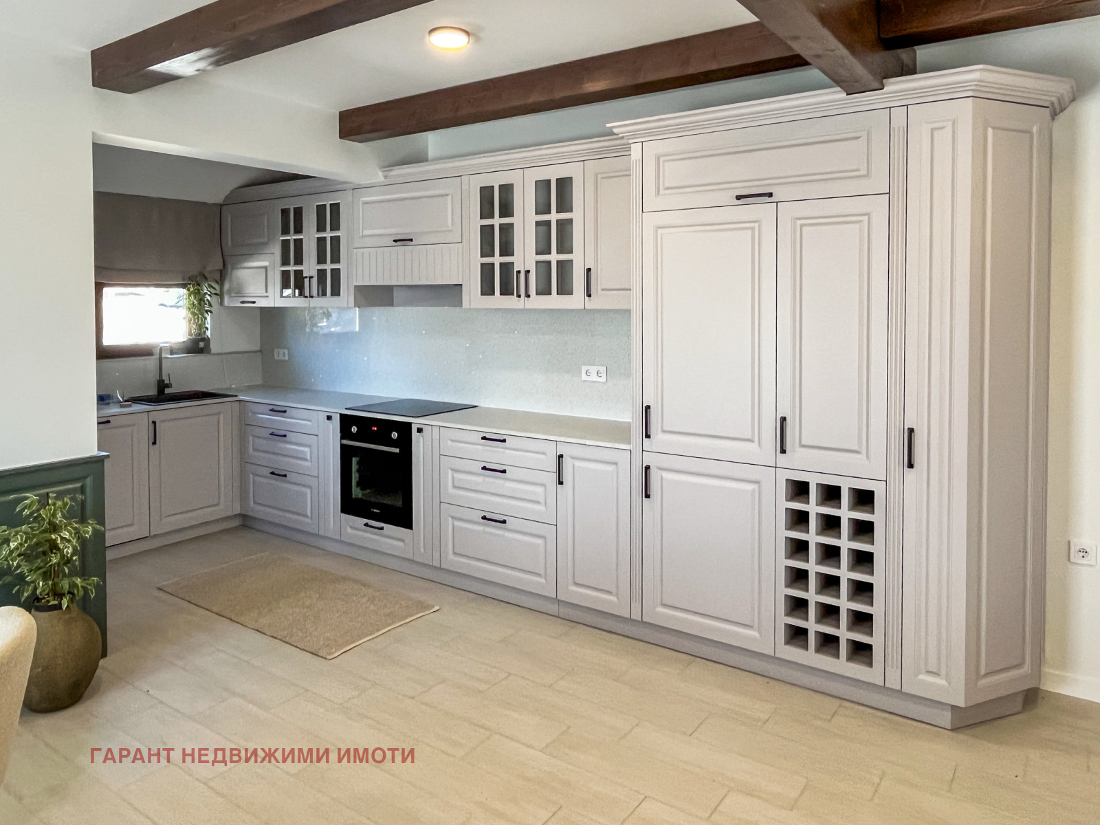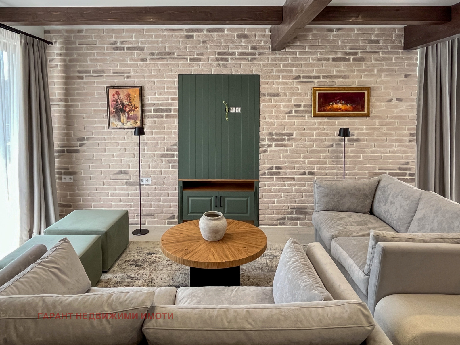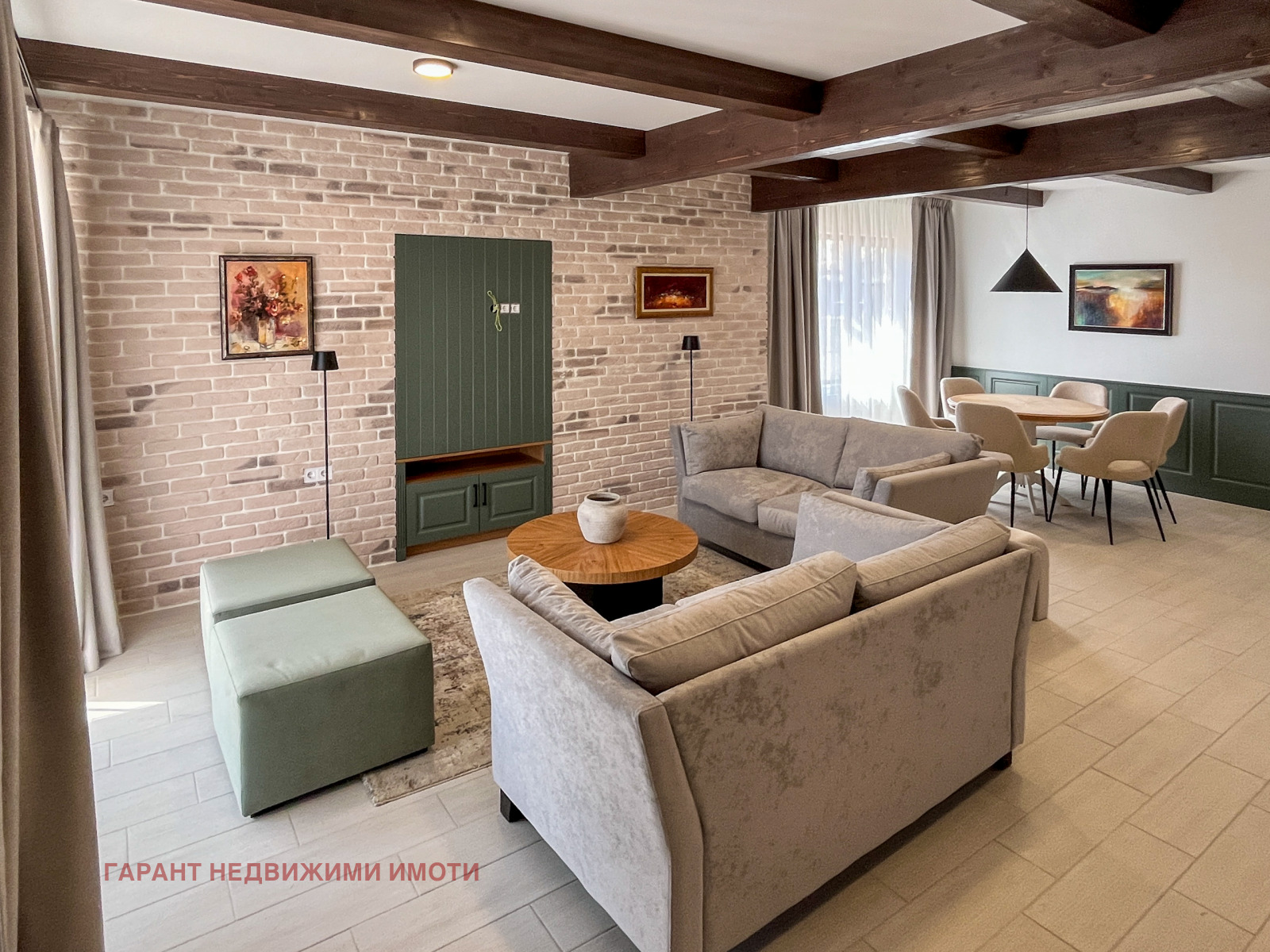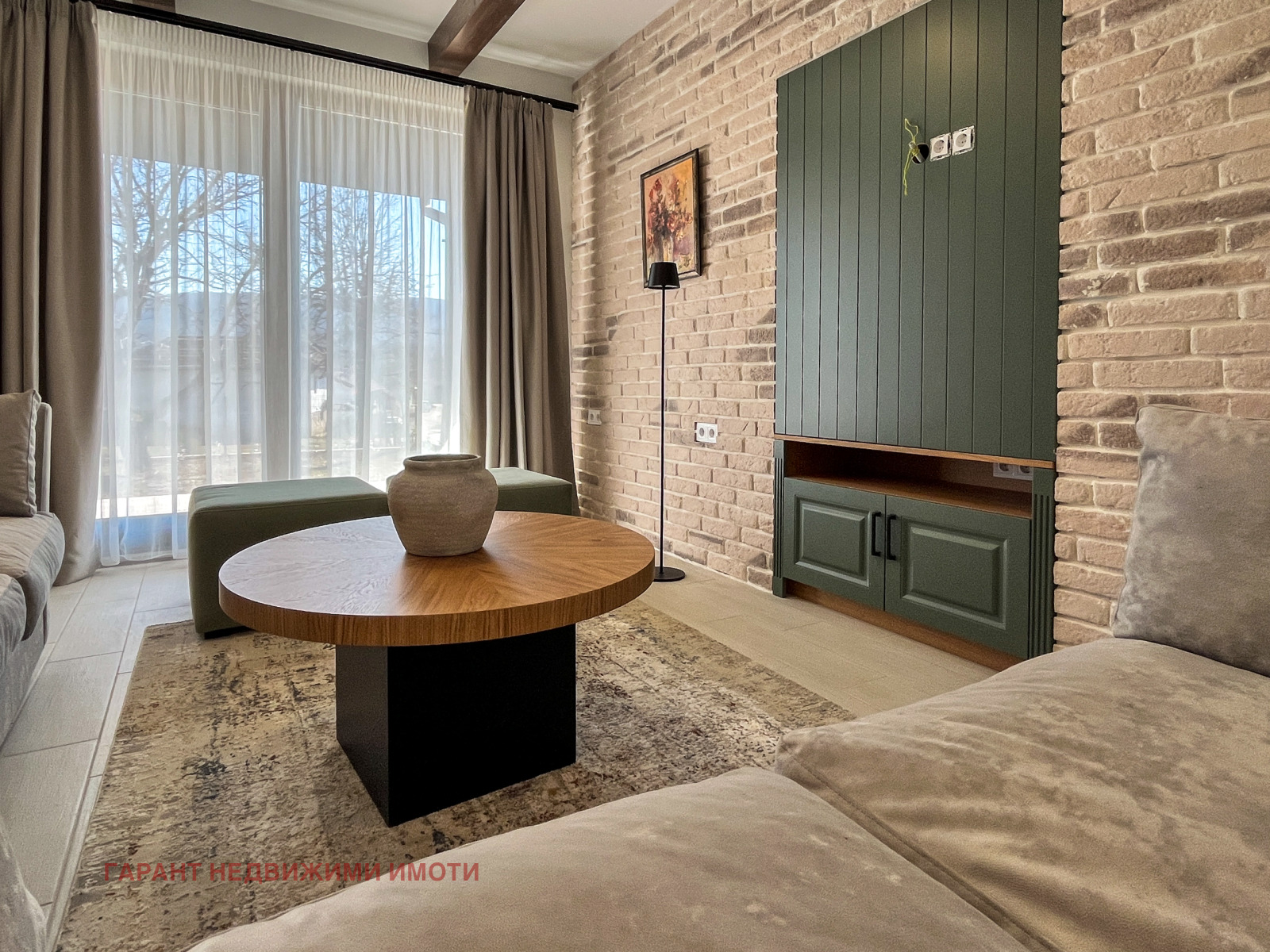 Напълно обзаведена и оборудвана по дизайнерски проект, с положени подови настилки - висок клас гранитогрес, завършени стени с облицовка от декоративни тухлички, латекс и мазилка.