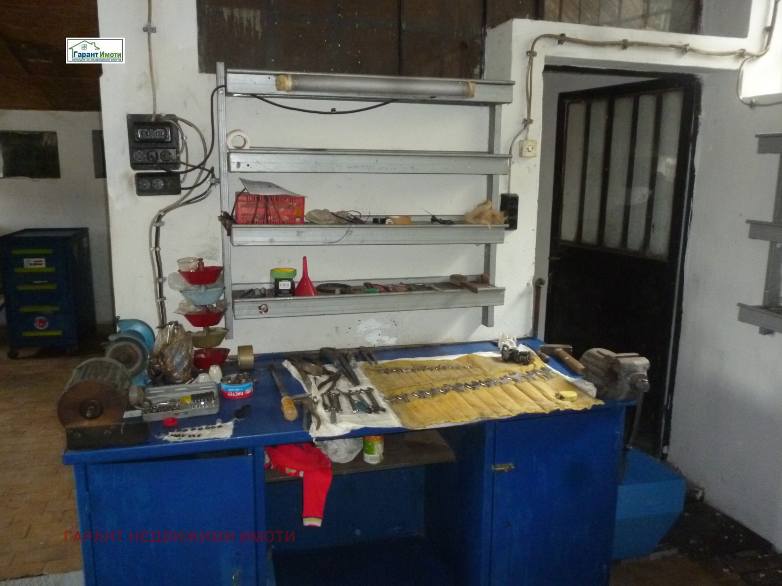 В масивна сграда долепена до жилищната са разпределени: клетка за измиване на автомобил, клетка с хидравличен подемник за смяна на гуми, клетка за ремонт на двигатели с канал, складови помещения, офисна част. Сервизът и жилищния етаж са с локална водна отоплителна система и вентилация. Продава се с наличното оборудване и обзавеждане. Повече информация и оглед: Мария Матева 0896 370 408