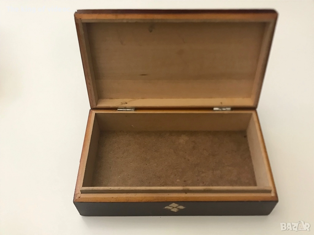 Продавам голяма дървена кутия на над 40 години. Добре запазена за годините си . Няма мухъл или счупено . Кутията никога е нямала ключалка . Размери : ширина - 24 см. ширина от вътре 22.5 см. Височина - 14 см. Диагонал - 28 см. Тегло : 414 грама . Изпращам по Еконт или Спиди . Цена 10 евро .