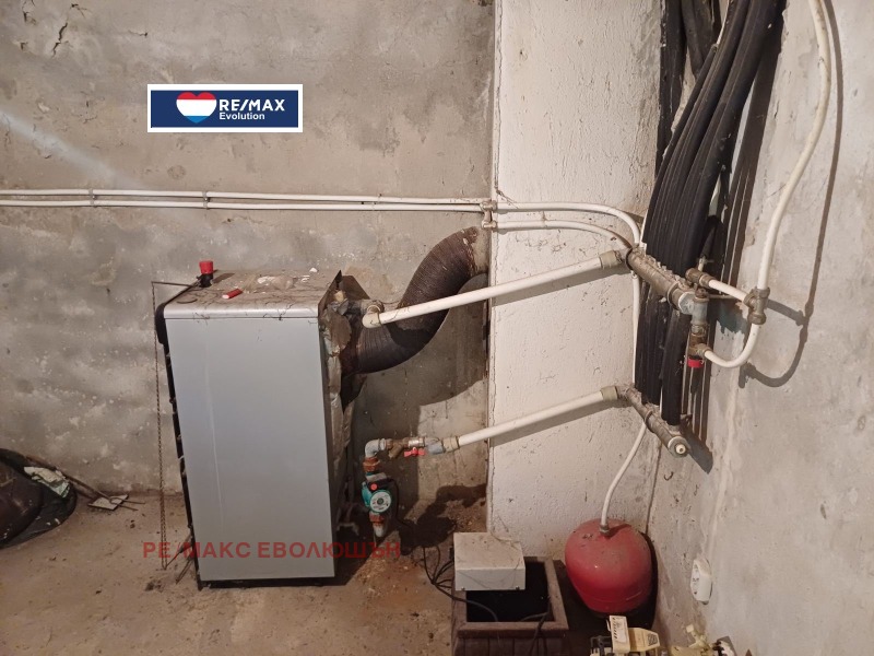 Отоплението е локално с котел в избата и подвързани всички стай с радиатори. Отделно в хола и трапезарията има изградена камина.