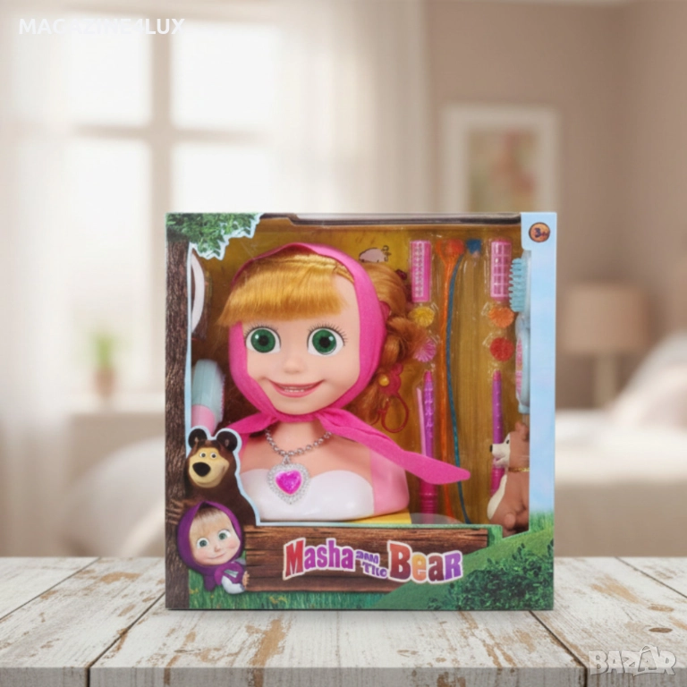 Принцеса Маша и мечокът – Бюст с дълга коса и аксесоари за оформяне на стилни прически → Обява 52982241