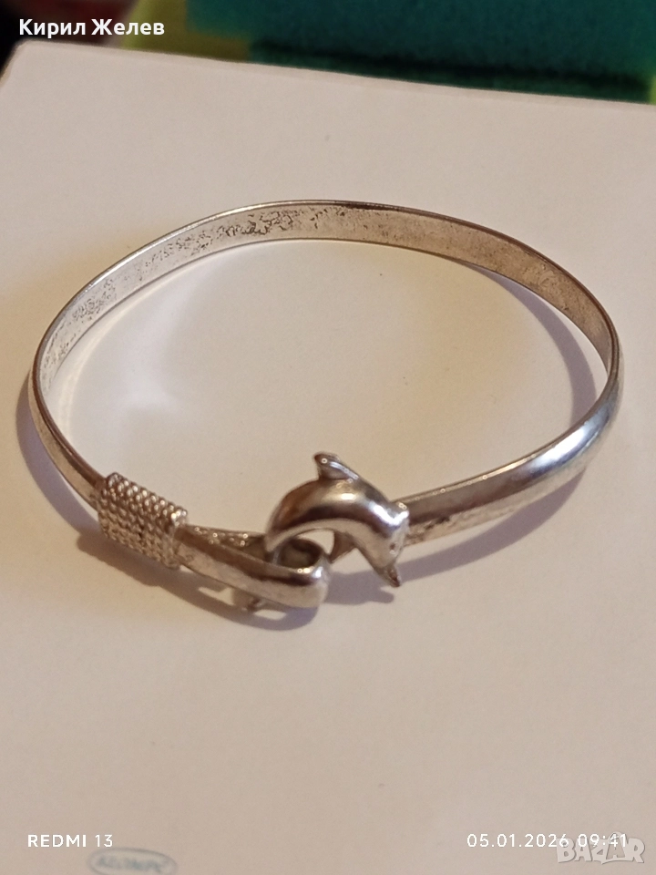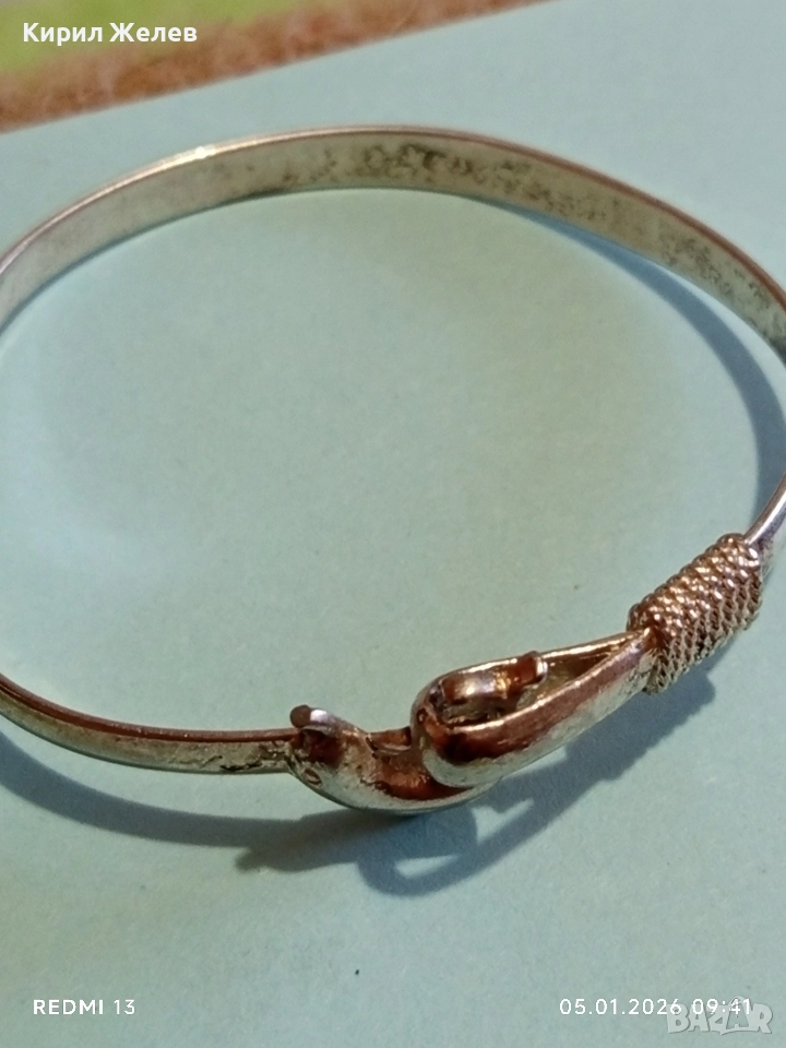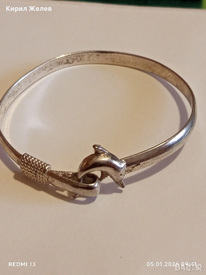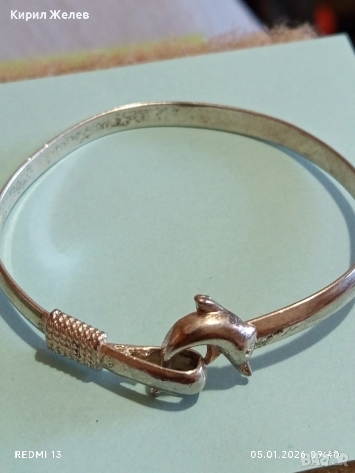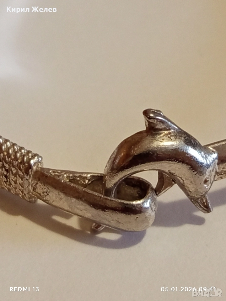 Сребърна гривна с Делфин 🐬 символизира хармония,свобода ювелирна изработка 26364