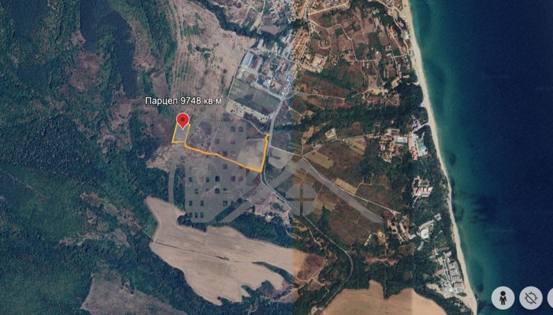 Имотът е с площ 9748 кв.м с лека югоизточна денивелация, от който се открива прекрасна морска панорама. Парцелът е със статут на земеделска земя 7-ма категория и начин на трайно ползване (НТП) - нива. Продават се и съседни имоти. Разположен е на 700 метра от главния път Бургас-Варна и на 500 м от регулация.