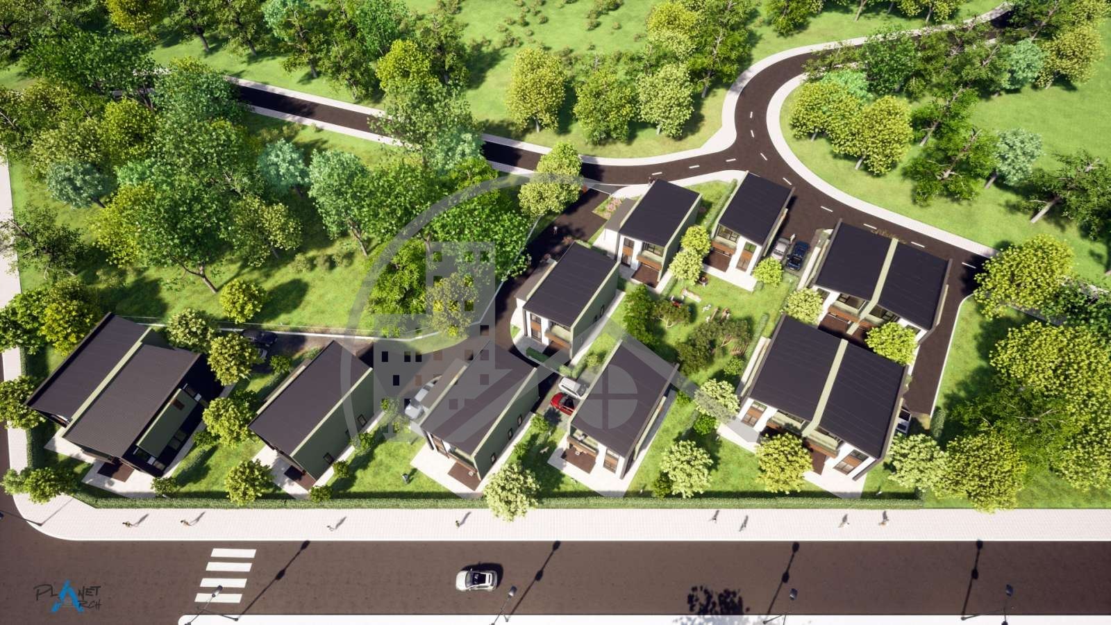 Къщите са разпределени в общ озеленен двор, с аели, видеонаблюдение. Ще бъдат изпълнени с висококачествени материали и издадени по БДС, като има възможност също да бъдат завършени до ключ срещу допълнително заплащане. Разсрочено плащане и възможност за кредитиране.