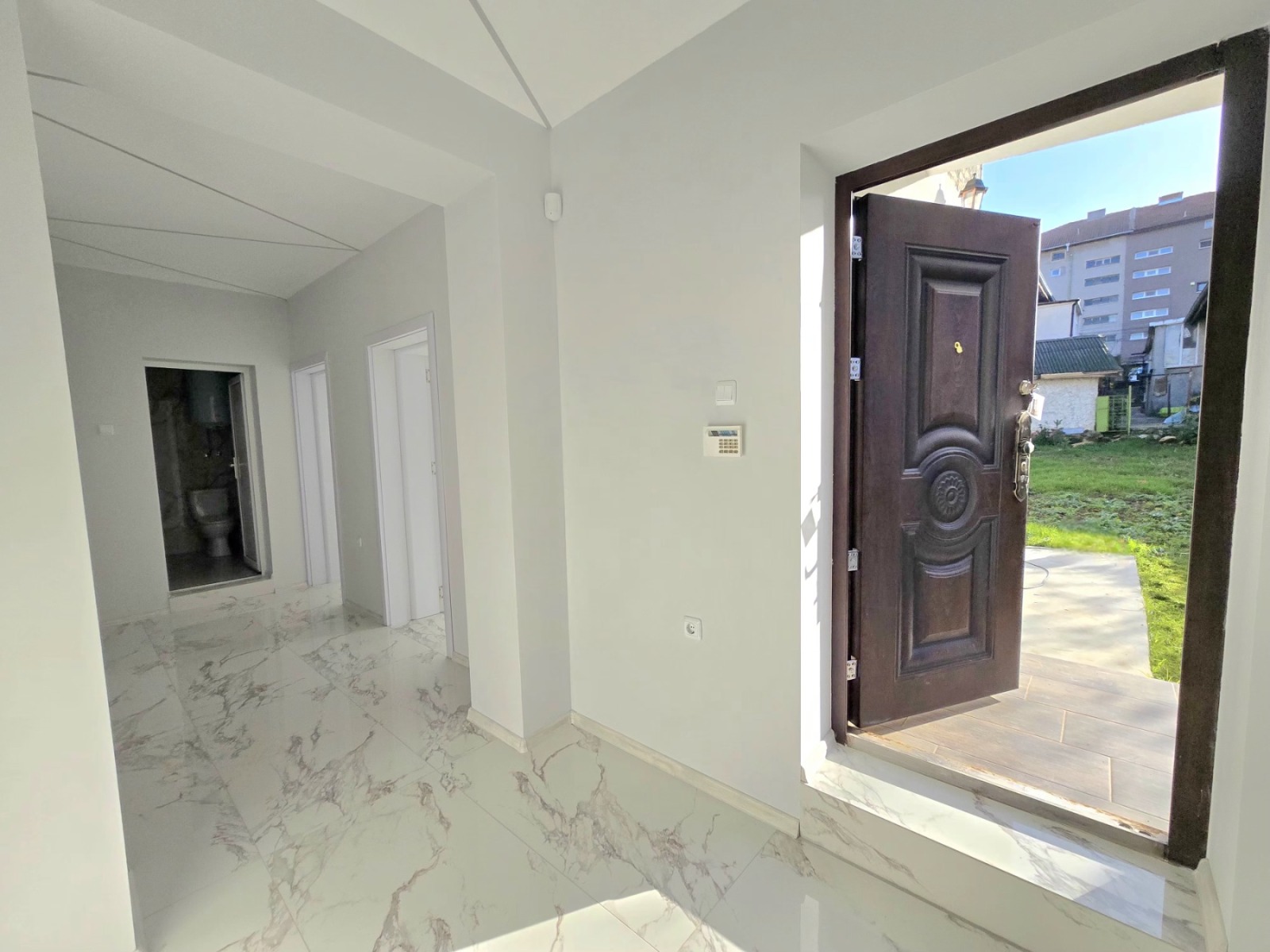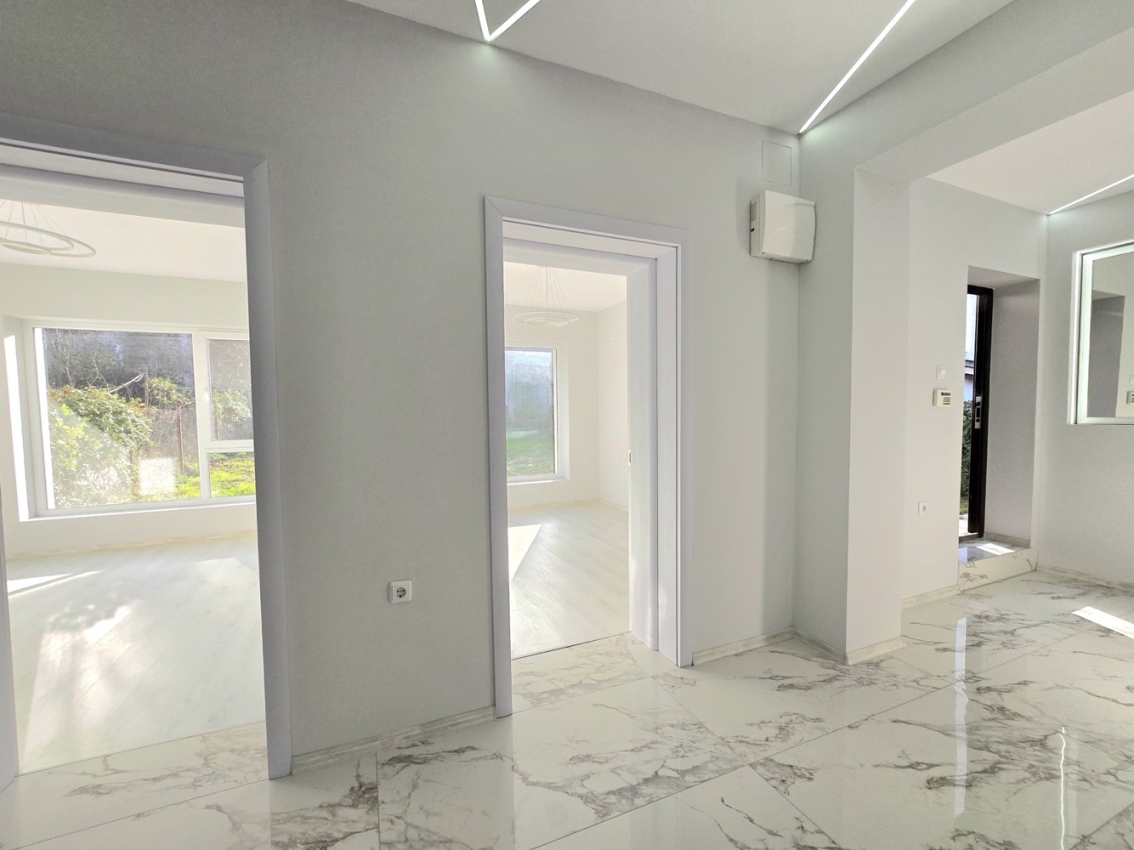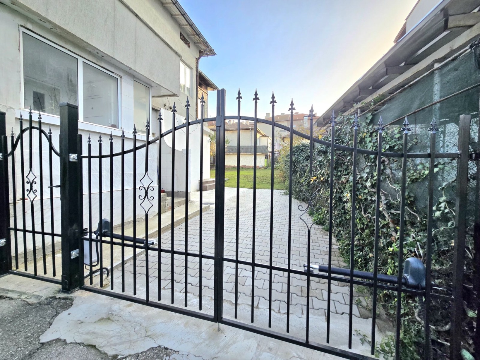 'Смени Адреса' продава етаж от къща на Червената Пръст в гр. Добрич с голям озеленен, САМОСТОЯТЕЛЕН, собствен, равен двор с правилна форма. Застроената площ на имота е 100кв.м разпределени по следния начин: голяма дневна с кухненски бокс, две спални, санитарен възел и входно антре. Има монтирана чисто нова кухня оборудвана с най-висок клас електроуреди. Къщата е луксозно завършена до ключ и разполага с видеонаблюдение, сот, интернет, външно осветление, вътрешна и външна топлоизолация, минерална мазилка. За по-голямо удобство на новите собственици е предвидено вътрешно място за паркиране на два автомобила и дистанционно управление на дворните врати.