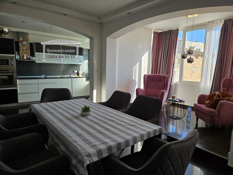 - огромна всекидневна с кухненски бокс , с мека мебел, вградена кухня, скрито осветление на тавана.