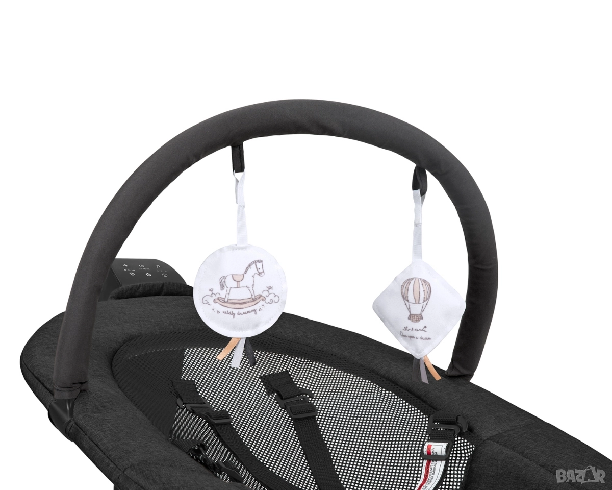 ПОРЪЧАЙ СЕГА С БЕЗПЛАТНА ДОСТАВКА! • Подходяща от раждането до 9 кг. с люлееща функция и до 30 кг. с функция като нормално столче; • Стоманена рамка с висока степен на издръжливост; • Изключително тих люлеещ режим; • 3 уникални посоки на движение - U-O-W; • 3 степени на люлеещия механизъм; • Регулируема облегалка в 2 позиции; • Touchscreen дисплей; • Музикален панел с 8 мелодии и 5 нива на регулиране на звука; • Таймер с 15, 30 и 45 минути; • Мрежести части за по-добра вентилация; • Гриф с играчки; • 5-точкова система за сигурност; • Противоплъзгаща основа; • DC Адаптор; • Тествано в съответствие с EN 12790-1: 2023 и EN 17191: 2021 от Intertek Testing Services. Размери: - Продукт: 79x57x71 см. / 4.8 кг.